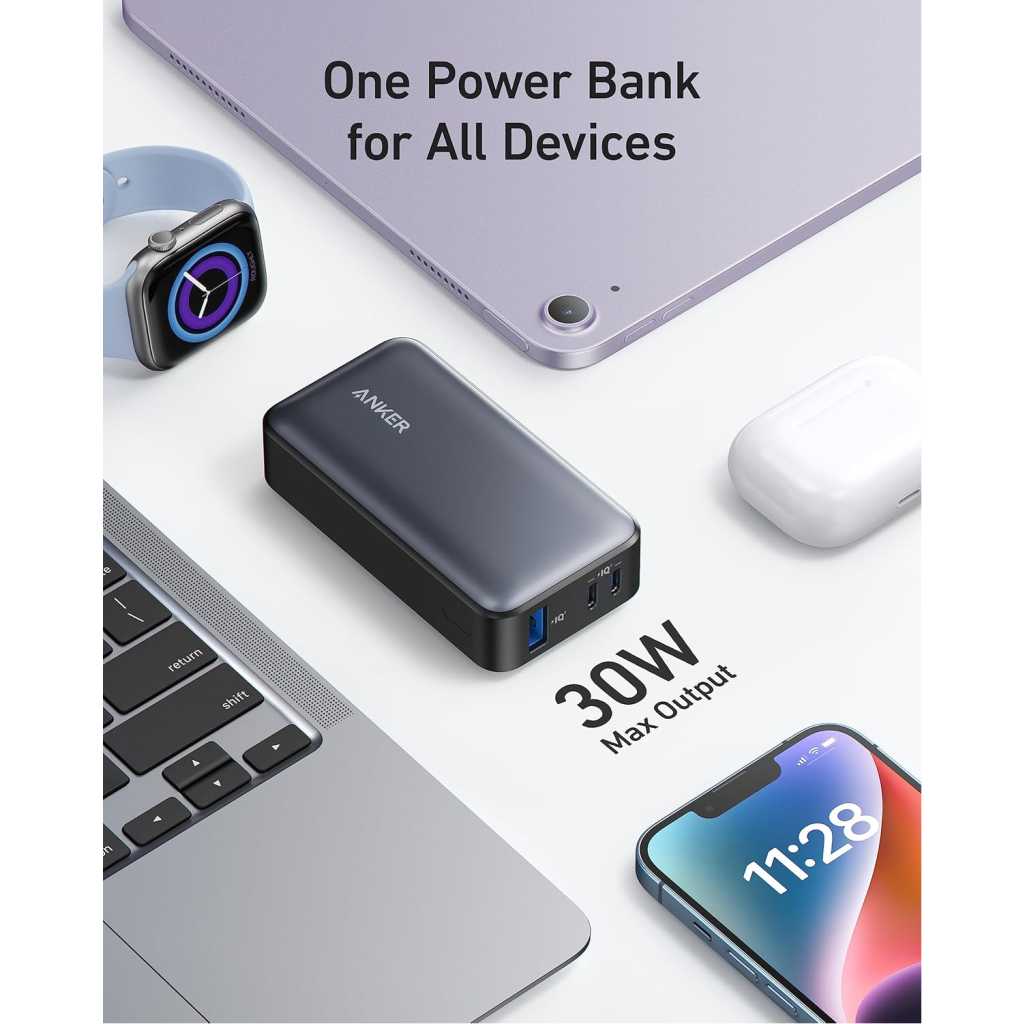 Anker Power Bank, 533 Power Bank (PowerCore 30W), Power IQ 3.0 Portable Charger with PD 30W Max Output, 10,000mAh Battery Pack for iPhone 16/15/14 Series, Dell, Microsoft Surface, iPad Pro, and More