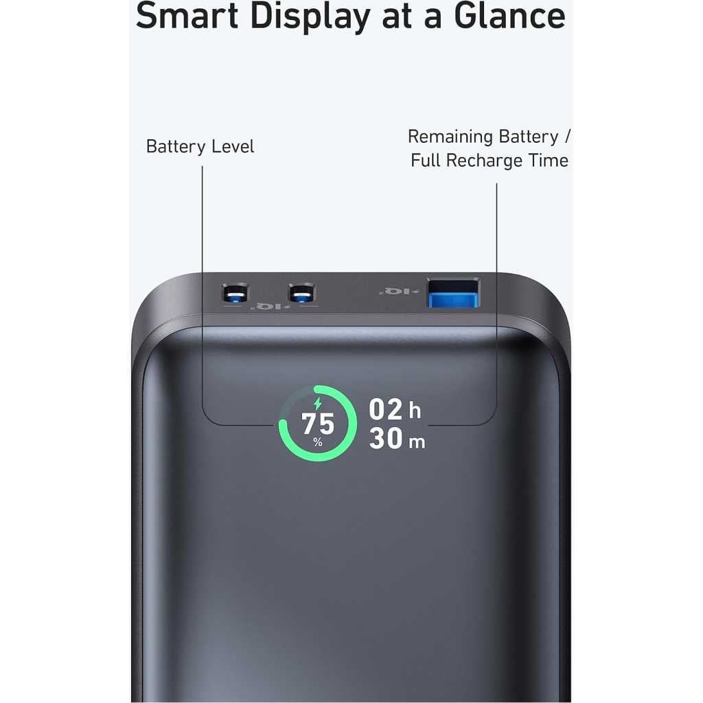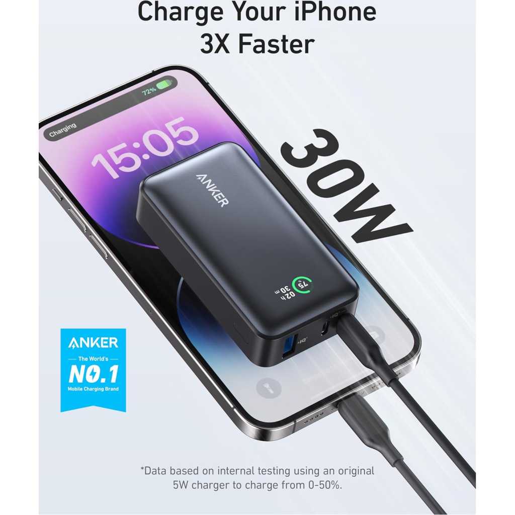Key Features: 30W High-Speed Charging: Supercharge your iPhone with a maximum output of 30W, boosting battery life up to 3 times faster than standard chargers. Compact Yet Powerful: Despite its pocket-friendly size, this power bank packs a punch, providing an additional 20 hours of video playtime for the iPhone 14. Smart Display: Stay informed at a glance via the LCD display, allowing you to track the battery status and usage time without hassle. Advanced Safety Features: Safeguarded by the advanced ActiveShield 2.0 safety system, Anker 533 Power Bank undergoes over 3,000,000 temperature checks per day to ensure optimal performance and protection. What You Get: Anker 533 Power Bank (PowerCore 30W), welcome guide, our worry-free 18-month warranty, and friendly customer service. *The 10,000mAh capacity consists of two 5,000mAh batteries that are connected in series.