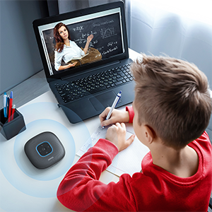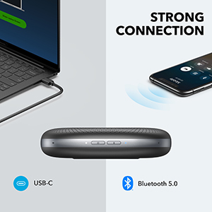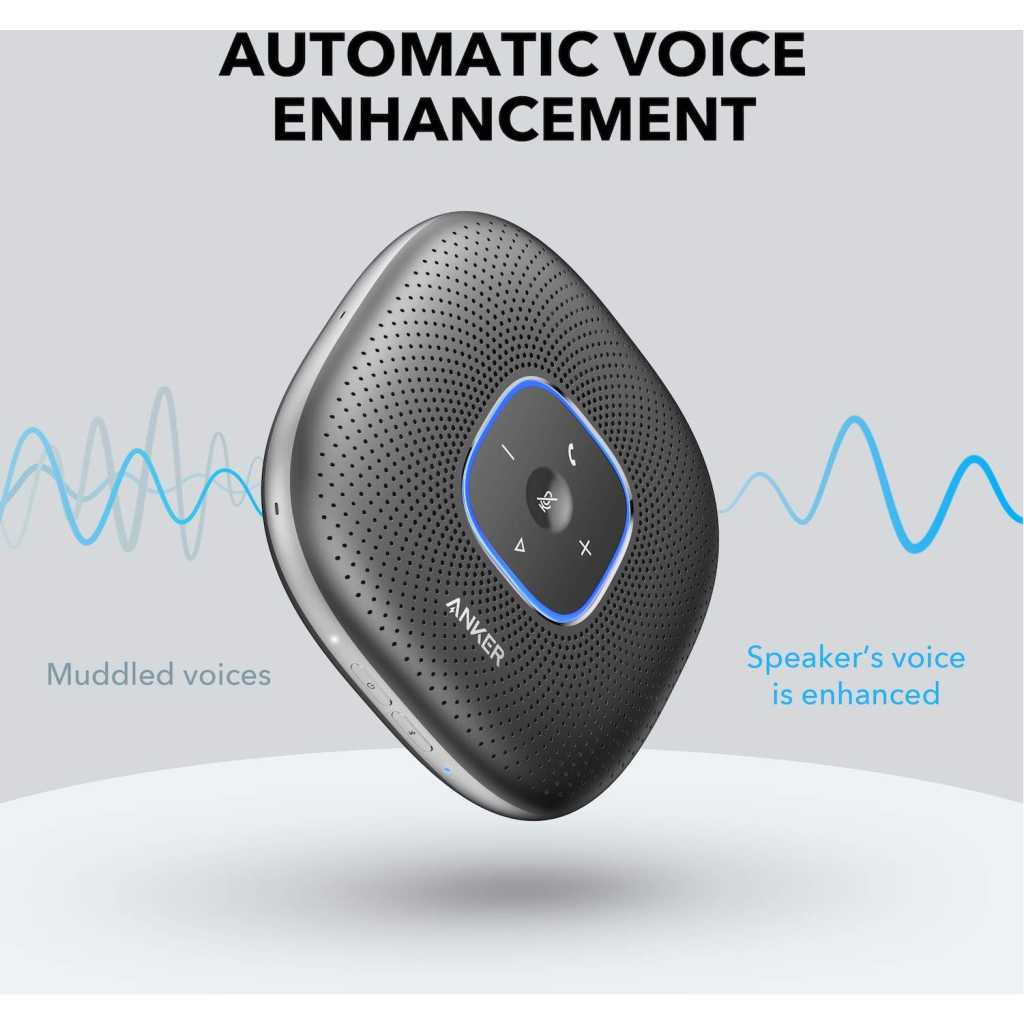 Anker PowerConf Speakerphone, Zoom Certified Conference Speaker with 6 Mics, 360° Enhanced Voice Pickup, 24H Call Time, Bluetooth 5.3, USB C, Compatible with Leading Platforms for Personal Workspaces. 360° Coverage: 6 microphones arranged in a 360° array pick up voices from all directions to instantly transform any space at home or the office into a meeting room. Smart Voice Enhancement: PowerConf Bluetooth speakerphone utilizes a custom DSP algorithm to optimize your voice in real-time and effectively reduce background noises. Optimized Clarity and Volume: Your voice is automatically balanced to make up for differences in volume and distance from the Bluetooth speakerphone. Perfect For Home Offices: Connect to your phone via Bluetooth or to your computer with a USB-C cable—without needing to install drivers. PowerConf Bluetooth speakerphone is Zoom certified and is compatible with all popular online conferencing platforms. 24 Hours of Call Time: PowerConf Bluetooth speakerphone has a built-in 6,700mAh battery to power days of calls. Integrated Anker PowerIQ technology allows you to charge other devices via PowerConf at optimized speeds. Product Description