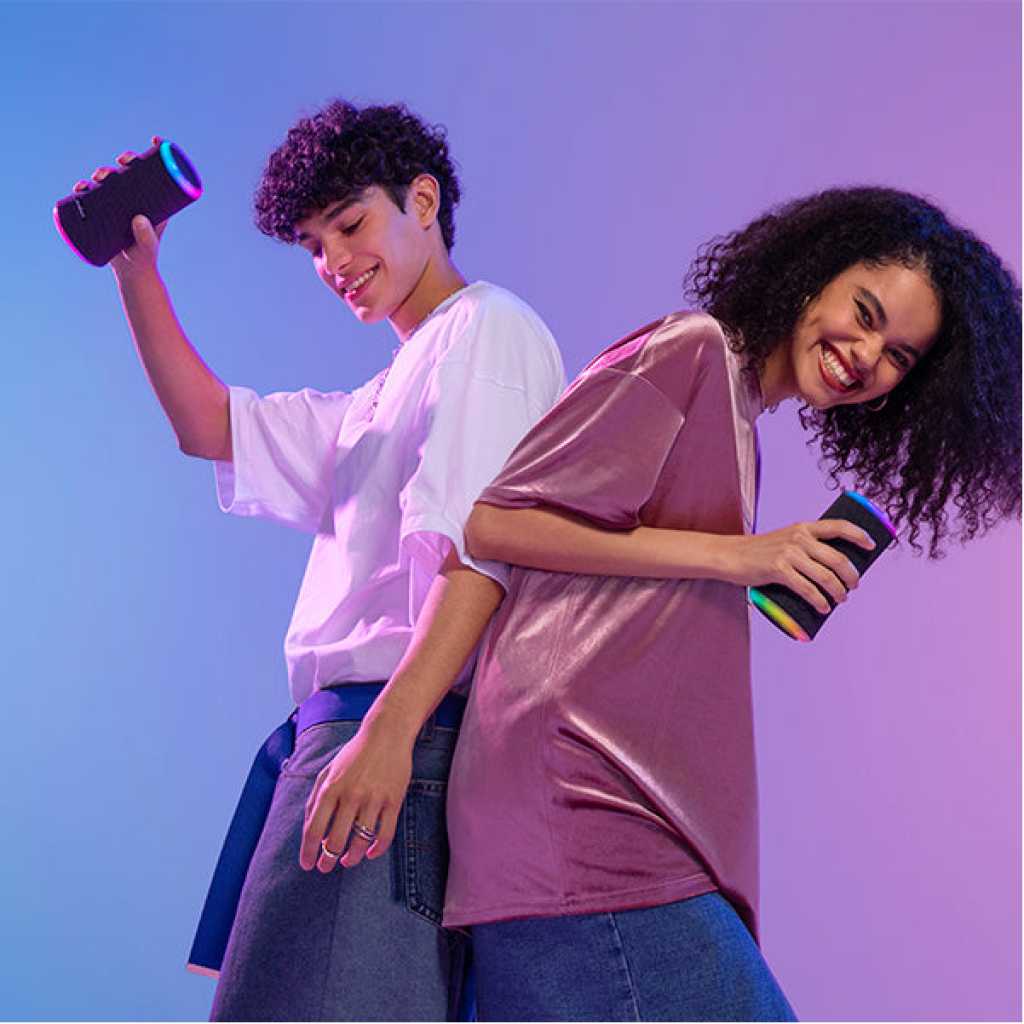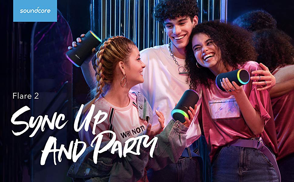 Key Features: Anker Soundcore Flare 2 Bluetooth Speaker with 360° Sound, PartyCast Technology, Adjustable EQ, 12-Hour Playtime, IPX7 Waterproof Wireless Speaker for Outdoor, Beach, and Backyard Parties. 360° Immersive Sound: A portable Bluetooth speaker with Powerful 360°, bass-driven audio. Dual drivers and passive radiators combine with BassUp™ technology to generate a portable party with 20W of intense sound. Beat-Driven Light Show: A totally reimagined rainbow light show that pulses, phases, and shines to the beat of your music. Double light-rings simultaneously shine down onto the dancefloor and up into the atmosphere for pumping floor-to-ceiling illumination. Pool Party Proof: No matter where the music needs to be, Flare 2 portable Bluetooth speaker is suited up and ready. Super-safe IPX7 waterproof protection effortlessly withstands spills, rain, and even complete submersion in water. PartyCast Technology: Link 100+ Flare 2 portable Bluetooth speakers to party into the next dimension—sound and light synchronize across every speaker for a seamlessly electrifying experience. Customize The Atmosphere: Enhance your audio with complete EQ control then tailor the light show to your mood with 6 mesmerizing lighting modes.