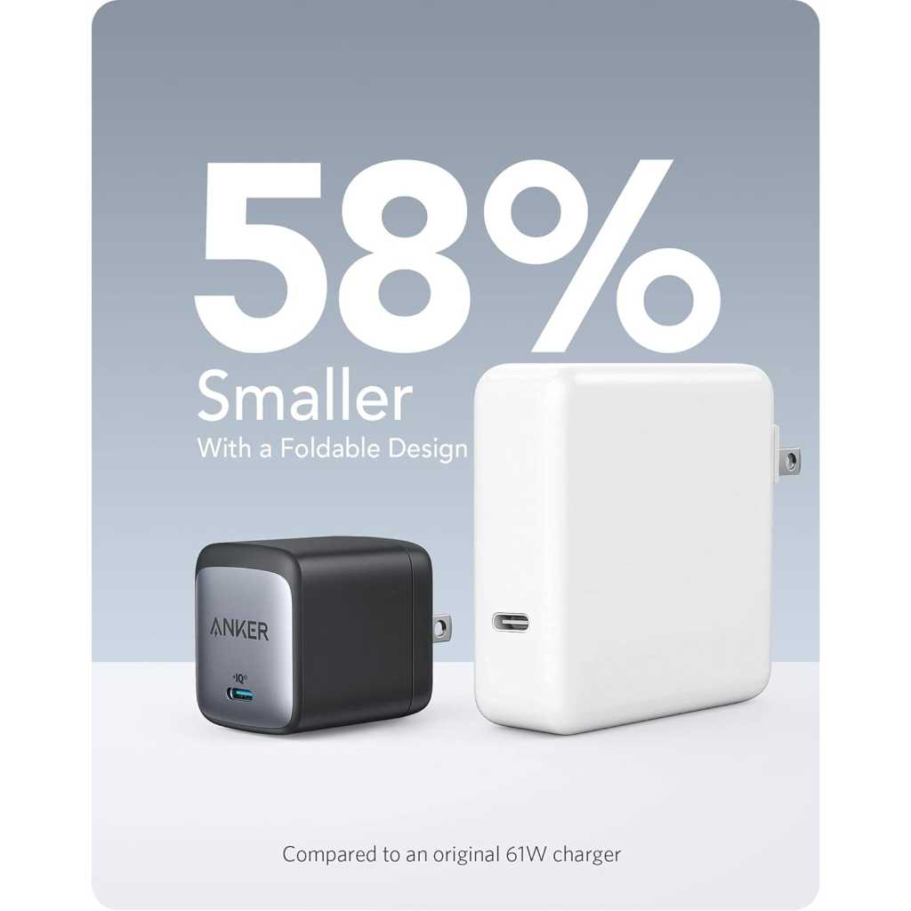 Save Space, Retain Power Anker Nano II takes up less space than your old charger but delivers just as much power.