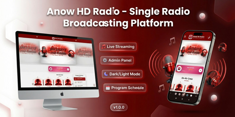 Anow HD - Single Radio Broadcasting Platform. Professional radio station website with live streaming player, admin panel, program schedule, crew management & dark/light mod