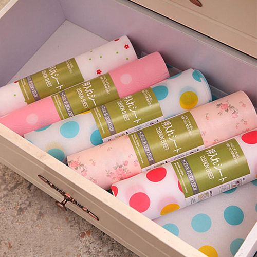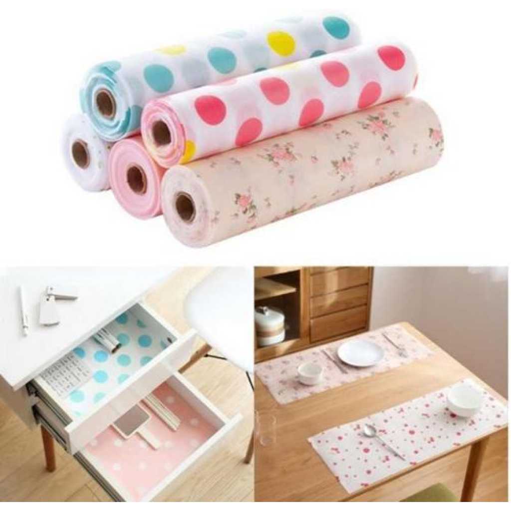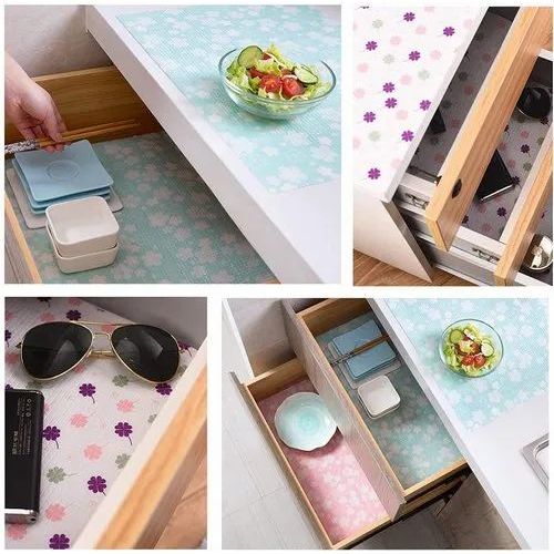 Anti-bacterial Waterproof Cabinet Cushion Sheet Place Mat Table Liner- Multi-colour JRM’s presents Washable DIY Anti Slip Moisture Proof Anti Dust Mat for Kitchen Drawer Table Chair. A necessary furniture accessory for your daily home life. It also can be a perfect decoration. The soft material has a certain protective effects to appliance, cabinet and drawer. Keep your stored items & shelves clean and protected. Great multi-functional product for your cabinets and drawers/fridge, decorative paper there’s really no end to the uses of this product, definitely a really nice addition to your home. Easy to clean and reuseThe mat can be wiped and clean using a tissue or moist cloth and can be reused. The non porous surface does not allow liquid to slip below. Absorb and decompose odor, restrain the reproduction of the bacteria Easy to cut for wide use Waterproof pvc mat can be cut into different shapes with scissor according to the size you want. you can cut mat with scissor for your drawers for cabinets as per your requirement very easily. Multipurpose use of a single mat Key Features: Anti-bacterial Waterproof Cabinet Cushion Sheet Place Mat Table Liner- Multi-colour Washable DIY Anti Slip Moisture Proof Anti Dust Mat for Kitchen Drawer Table Chair Multipurpose use with beautifull design Washable, anti grease dirt, reduce the damage from oil or dirt Product packaging: 1 x table mat (50x600cm) To prevent the humidity and dust flowing from bottom to top