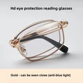 Anti Blue Light multifokale læsebriller, bærbare sammenfoldelige presbyopiske briller til både nær- og fjernsyn, briller med guldramme