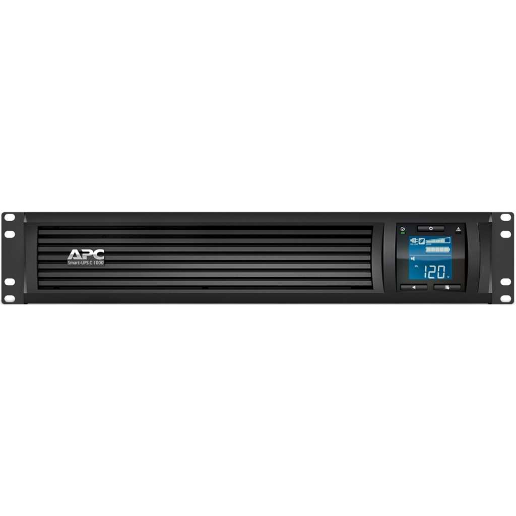 The APC SMC1000I-2U UPS by Schneider Electric Smart-UPS™ C is a high performance uninterruptible power supply (UPS). The UPS provides protection for electronic equipment from AC power blackouts, brownouts, sags, and surges, small AC power fluctuations and large disturbances. The UPS also provides battery backup power for connected equipment until AC power returns to safe levels or the batteries are fully discharged. APC SMC1000I-2U UPS Features Cold-start capable: Provides temporary battery power when the utility power is out. Green mode: Patent-pending operating mode that bypasses unused electrical components in good power conditions to achieve very high operating efficiency without sacrificing any protection. High online efficiency: Reduces utlility costs, generates less heat. LCD Status Display: Provides key UPS status at a glance. Multiple status indicators with load and battery bar graphs. Pure sine wave output on battery: Simulates utility power to provide the highest degree of compatibility for active PFC (power factor corrected) servers and sensitive electronics. Temperature-compensated battery charging: Prolongs battery life by regulating the charge voltage according to battery temperature. The APC Smart-UPS SMC Series offers guaranteed battery backup and surge protection for entry-level servers, small switches, networking devices, and point-of-sale (POS) equipment max. Output 1.000 VA / 600 Watts – Rackmount 2U Pure sine wave output on battery: Simulates utility power to provide the highest degree of compatibility for active PFC (power factor corrected) servers and sensitive electronics. LCD Status Display: Provides key UPS status at a glance. Multiple status indicators with load and battery bar graphs. Content of delivery: Smart UPS SMC User manual USB Cable Shutdown Software Key Features: 2U Rackmount Line interactive with AVR and power conditioning LCD graphics display 1000VA / 600w USB and Serial Interface 1000VA/600W line interactive pure sine wave 2U rackmount UPS