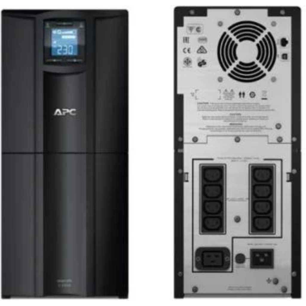APC SMC3000I UPS. An award-winning Smart-UPS provides intelligent and efficient network power protection. It is ideal for servers, point-of-sale, routers, switches, hubs and other network devices. The SMC3000I Smart-UPS is trusted to protect critical data and equipment from power problems by supplying clean and reliable network-grade power. In addition to legendary reliability and manageability, Smart-UPS have extremely high efficiency at low, medium and high load levels making them ideal for today’s multi-core or virtualized servers that have varying load consumption. SMC3000I Overview The APC Backup SMC3000i professional UPS in the entry-level segment for individual workstations, home offices and private users. Pure sine wave output on battery; Simulates utility power to provide the highest degree of compatibility for active PFC (power factor corrected) servers and sensitive electronics. Output power capacity 2.1 KWatts / 3.0 kVA Nominal Input Voltage: 230V Input frequency: 47 – 63 Hz Typical recharge time: 3hour(s) Interface Port(s): USB Control panel: Multi-function LCD status and control console Audible Alarm: Alarm when on battery : distinctive low battery alarm : configurable delays Major Features: LED status indicators: Quickly understand unit and power status with visual indicators. Audible alarms: Actively let you know if the unit is on battery, if the battery is low or if there is an overload condition. Network manageable: Provides remote power management of the UPS over the network. Disconnected battery notification: Warns when a battery is not available to provide backup power. Serial connectivity: Provides management of the UPS via a serial port. USB connectivity: Provides management of the UPS via a USB port (not available on all models). Key Features: 3000VA / 2100W Power Capacity: Protects critical equipment during outages. Pure Sine Wave Output: Delivers clean power for sensitive electronics. Automatic Voltage Regulation (AVR): Maintains consistent voltage levels. LCD Status Display: Provides real-time UPS information. Network Management Ready: Enables remote monitoring (card sold separately). APC Smart-UPS C 3000VA LCD 230V (SMC3000I) 2.1 KWatts / 3.0 kVA (8) IEC 320 C13, (1) IEC 320 C19 (Battery Backup) 3 hour Recharge time 300 Joules Surge energy rating