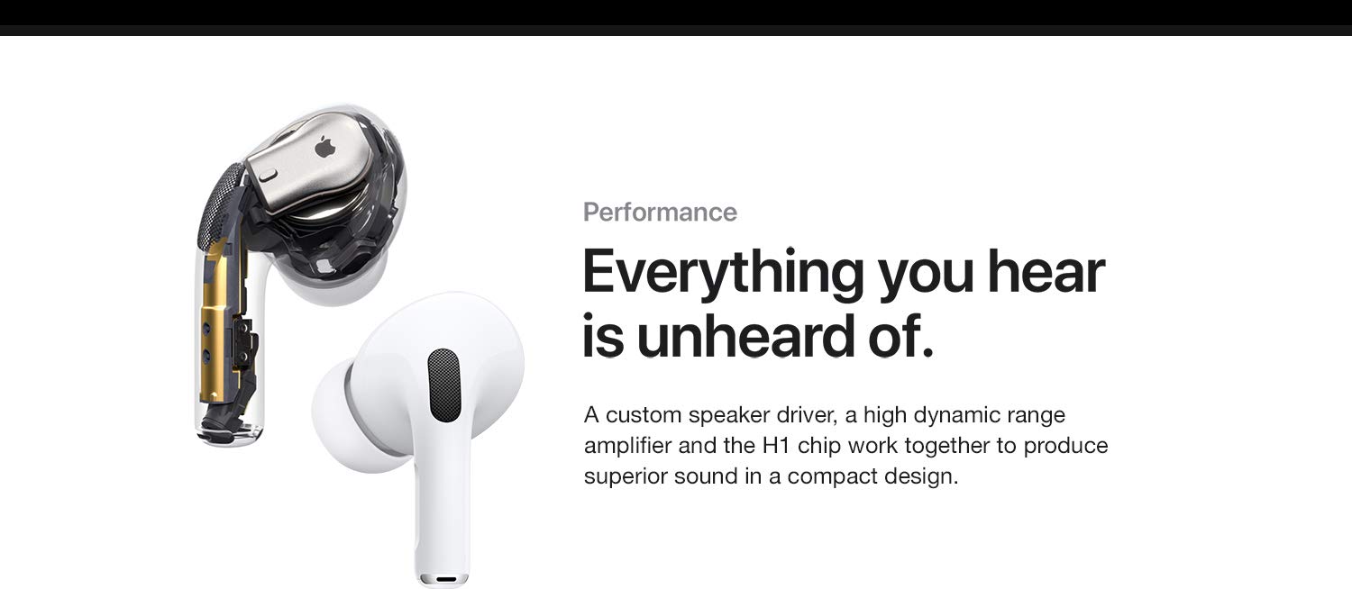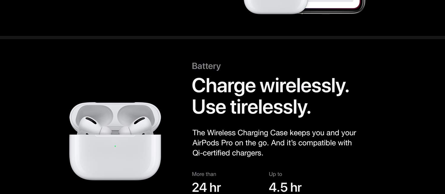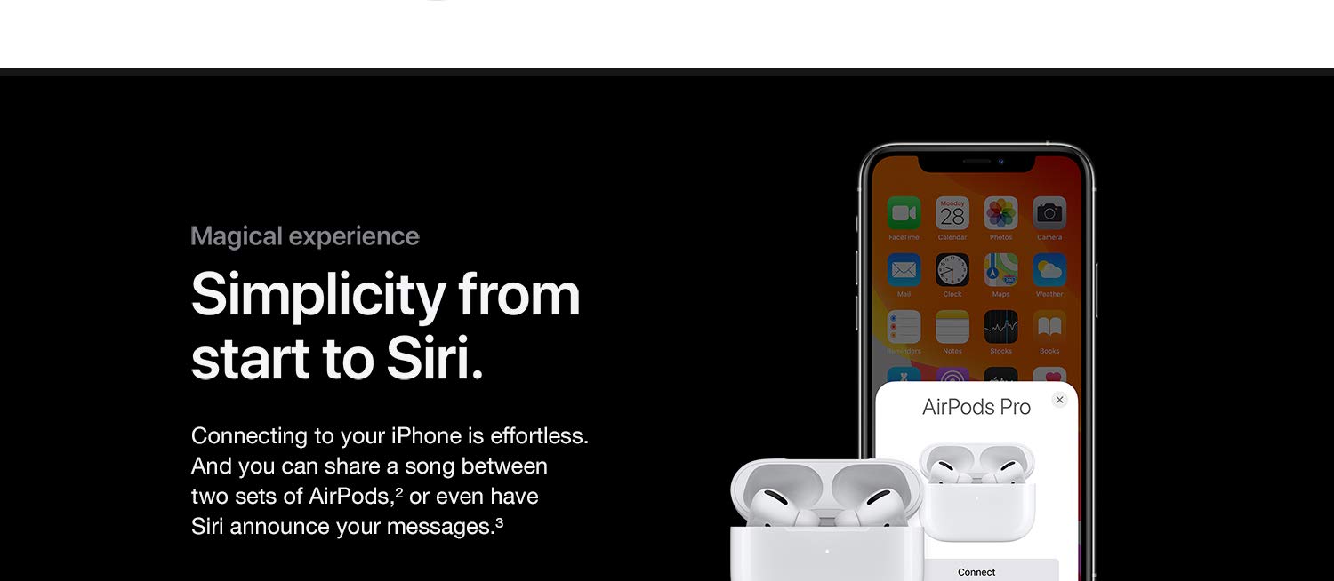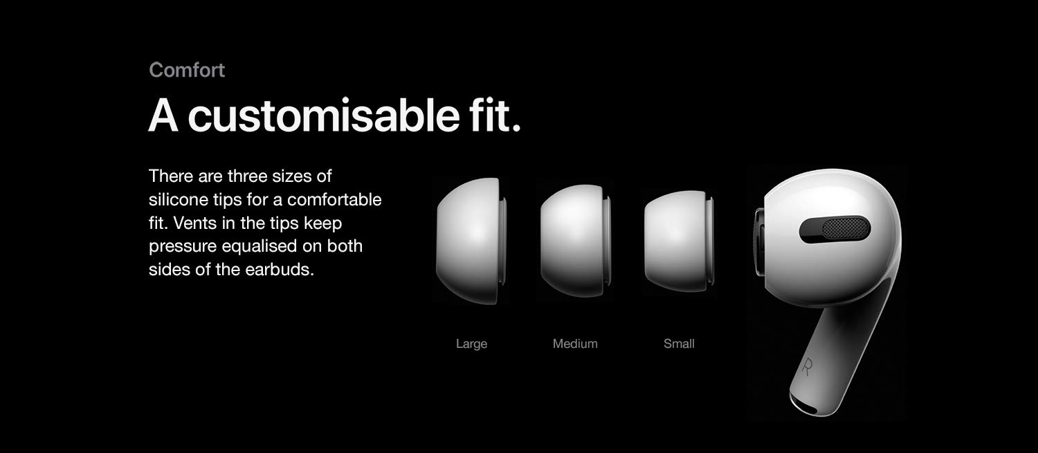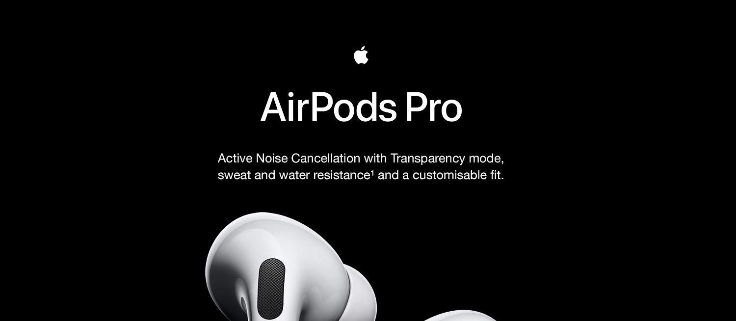 Key Features: Active noise cancellation for immersive sound Transparency mode for hearing and connecting with the world around you Three sizes of soft, tapered silicone tips for a customisable fit Sweat and water resistant Adaptive EQ automatically tunes music to the shape of your ear Easy setup for all your Apple devices Quick access to Siri by saying “Hey Siri” The wireless charging case delivers more than 24 hours of battery life