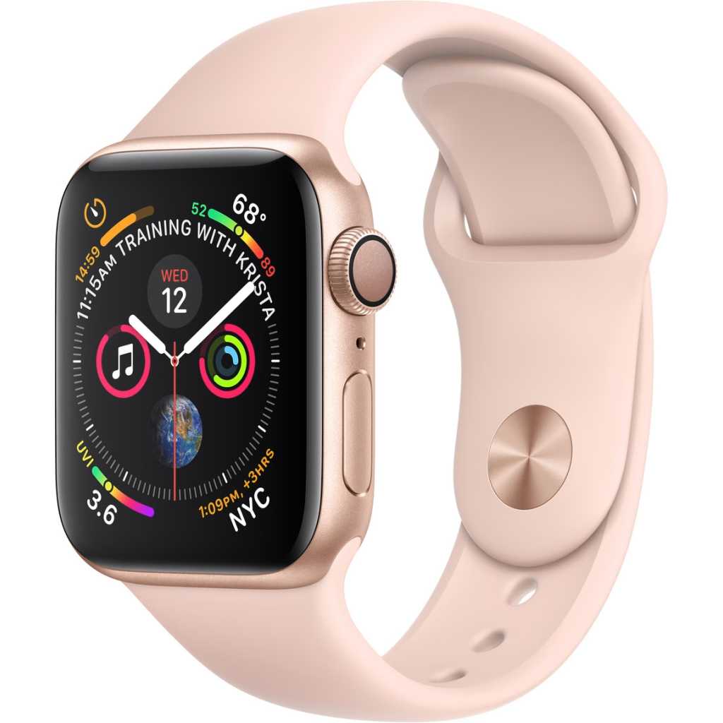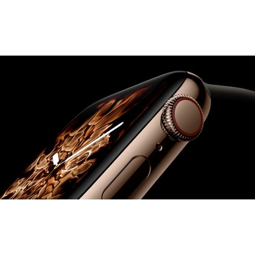 1. Apple Watch Series 4 has a water resistance rating of 50 meters under ISO standard 22810:2010. This means that it may be used for shallow-water activities like swimming in a pool or ocean. However, Apple Watch Series 4 should not be used for scuba diving, waterskiing, or other activities involving high-velocity water or submersion below shallow depth. Key Features: Gold aluminum case Built-in GPS GLONASS Galileo QZSS S4 with 64-bit dual-core processor W3 Apple wireless chip Barometric altimeter Capacity 16GB1 Optical heart sensor Electrical heart sensor Improved accelerometer up to 32 g‑forces Improved gyroscope Ambient light sensor LTPO OLED Retina display with Force Touch (1000 nits) Digital Crown with haptic feedback Louder speaker Ion-X strengthened glass Sapphire crystal and ceramic back Wi-Fi (802.11b/g/n 2.4GHz) Bluetooth 5.0 Built-in rechargeable lithium-ion battery Up to 18 hours of battery life2 Water resistant 50 meters3 watchOS 5