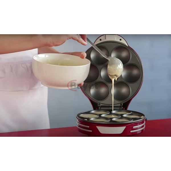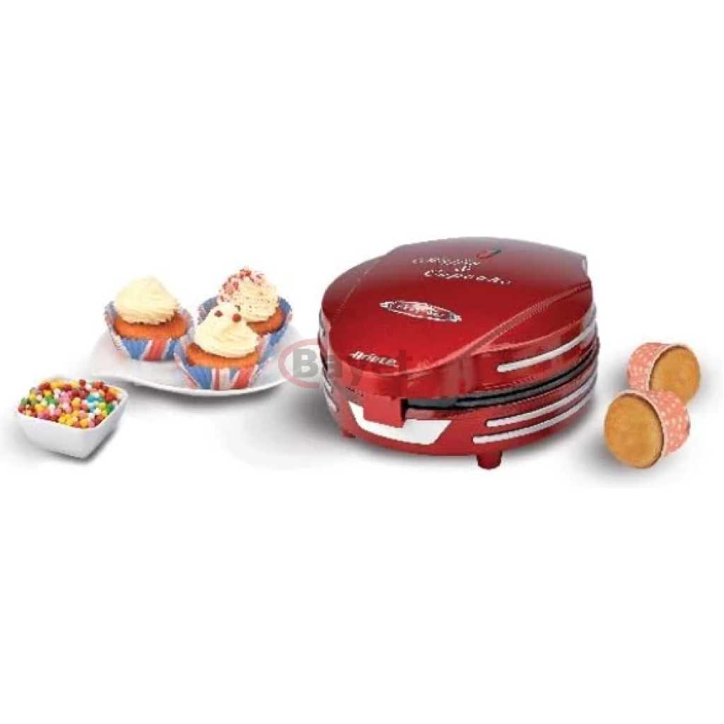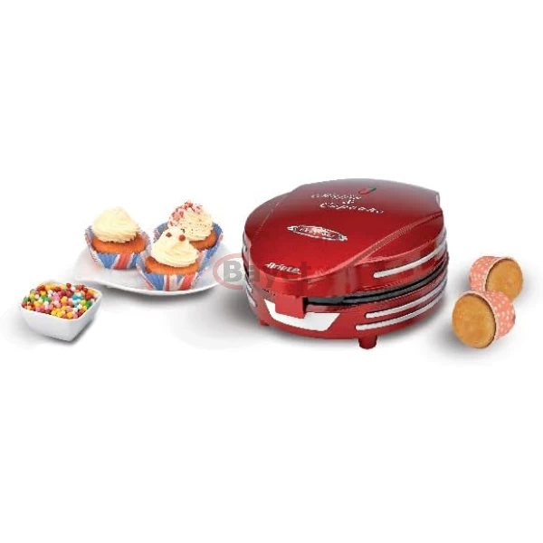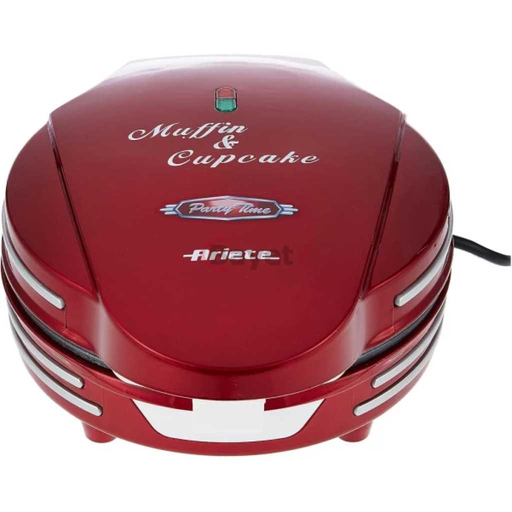 Ariete Electric Muffin And Cupcake Maker ART188, Non-Stick Plate, 7 Moulds, 700W – Red. READY IN FEW MINUTES: Introducing the Ariete Muffin and Cupcake Maker with 700W power. Simply place the ingredients on the non-stick plates, and within minutes, delectable cakes are ready to be savored! The power/ready light indicator ensures easy monitoring for perfect baking results RETRO DESIGN: Embrace the charm of the Ariete Muffin and Cupcake Maker with its retro design plate featuring specially designed cavities for cooking muffins and cupcakes. Its compact and exclusive design not only adds style but also ensures effortless portability for your baking adventures 7 MOULDS: The Muffin and Cupcake Maker features 7 molds, allowing you to cook 7 muffins or cupcakes simultaneously. Save time in the kitchen with this efficient appliance, effortlessly creating multiple treats in one go IDEAL FOR HOME USE: The Cupcake Maker is ideal for home use with its safety lock system and cord wrap for convenient storage. Its profound structure ensures a prolonged service life, making it a reliable companion for countless batches of delicious cupcakes EASY TO CLEAN: Cleaning is a breeze with the Cupcake Maker’s non-stick plates. Simply wipe them clean after use. Its fade-proof construction resists stains, ensuring long-lasting durability while maintaining a pristine appearance. Enjoy hassle-free maintenance with this user-friendly appliance