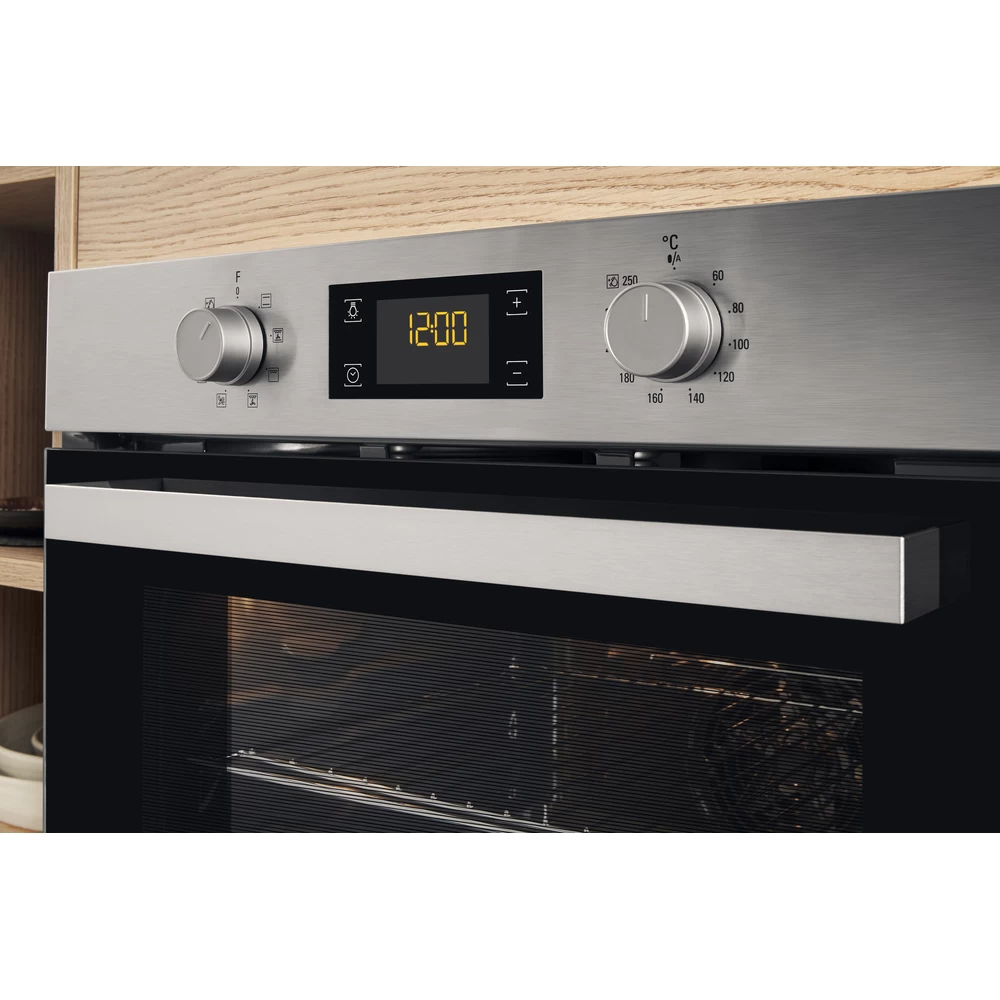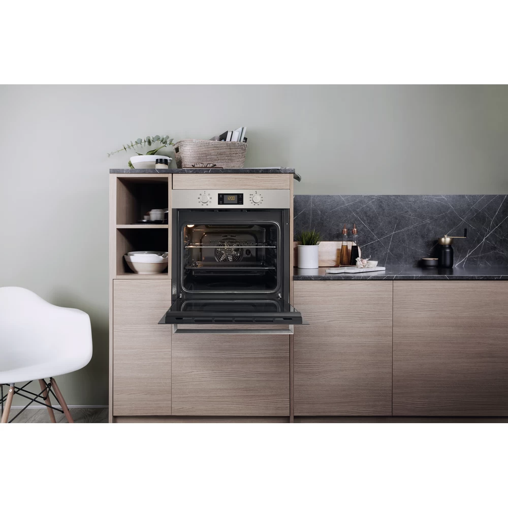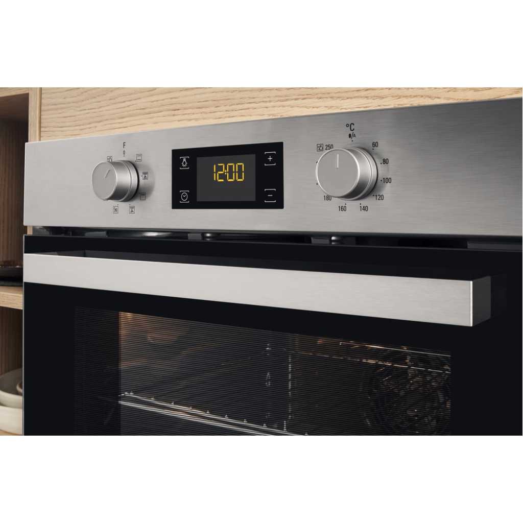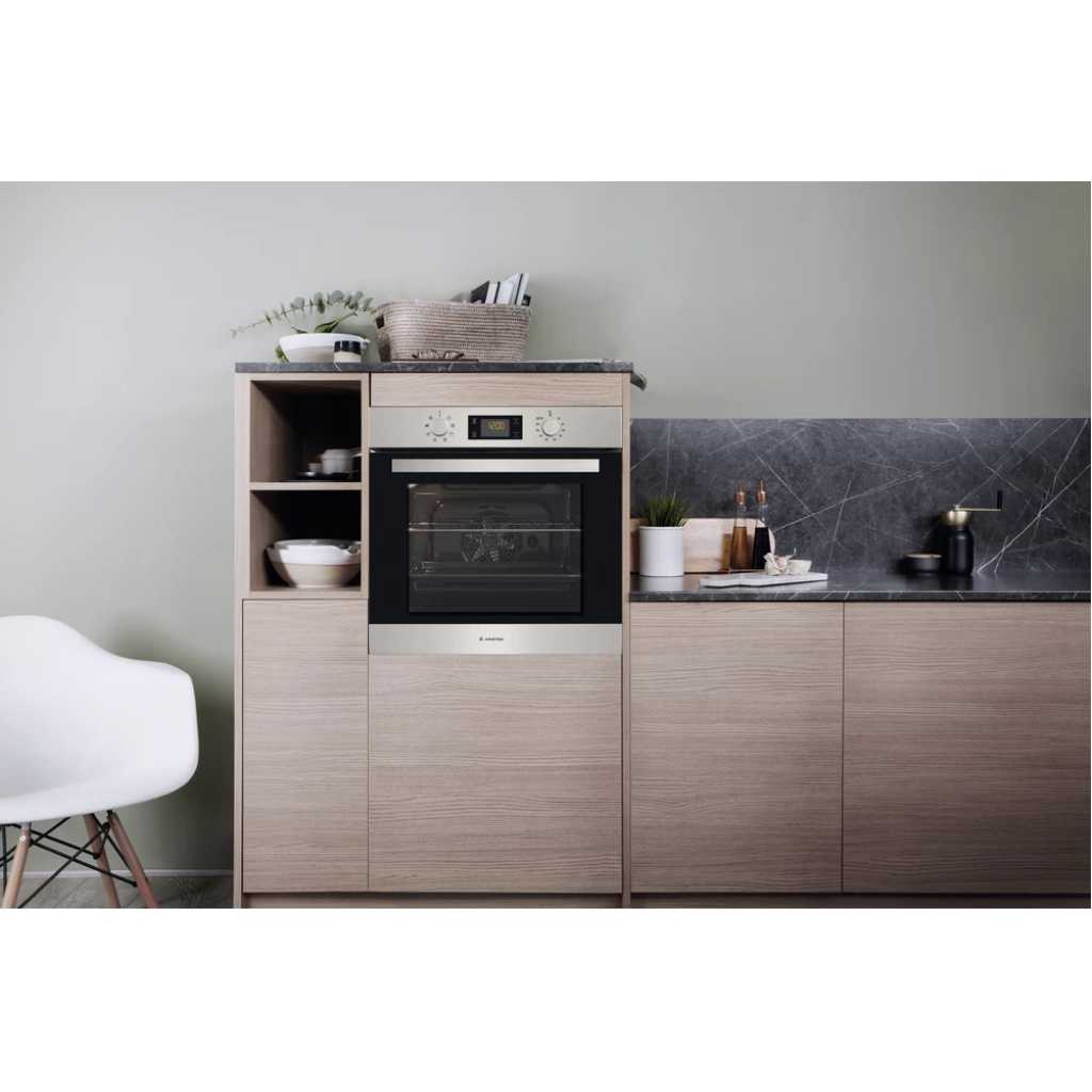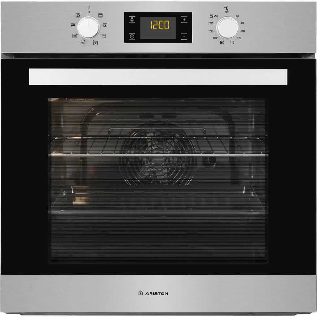 Key Features: Ariston 66 – Litres Oven With Fan, A Built-in Electric Oven With Self Cleaning Function, Stainless Steel – Italy. Multifunction Oven 60cm Built-In Electric Oven The diamond clean cleaning system 66 ltr – embossed cavity A number of functions: 5 traditional functions + 2 expert recipes Electronic with knob Oven type: Electric Colour: Inox Self-cleaning technology: Hydrolytic Energy Class: A Spectrum: A+++ – D 1 grid, 1 tray