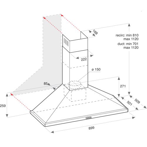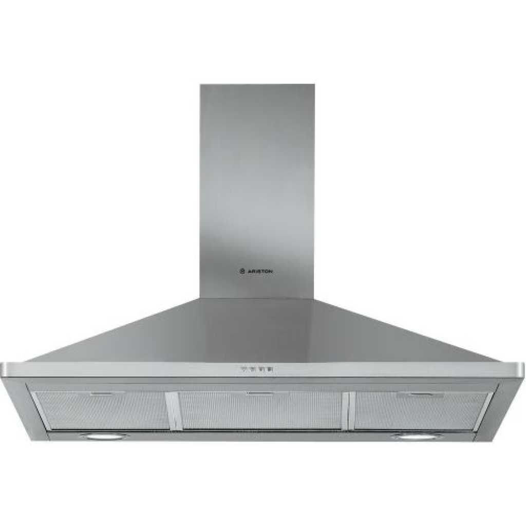 ARISTON WALL MOUNTED COOKER HOOD 90cms AHPN9.4-Silver This Ariston wall mounted Cooker Hood features: between 60cm and 90cm wide appliance. An outstanding cooker extractor fan, ensuring a fresh, grease-free cooking environment. New design ensuring extra silent performance. Dishwasher-safe, washable aluminium grease filters. MAIN SPECIFICATION Installation type: Chimney Energy Class: D Width (cm): 90.0 Spectrum: A+++ – D TECHNICAL DATA PERFORMANCE Energy efficiency class : D Fluid dynamic efficiency class : E Grease filtering efficiency class : C Lighting efficiency class : F Total annual energy consumption (kWh) : 90.5 Noise level (dBA) : 62 DIMENSIONS Height (cm) : 112.0 Width (cm) : 90.0 Depth (cm) : 50.9 STRUCTURAL FEATURES Structure type : Chimney Type of control : Buttons Washable filter Type of lamps used : Halogen Number of lights : 2 Number of speed settings : 3