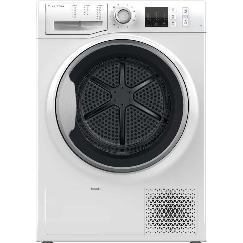 Ariston 9kg Heat Pump Tumbler Dryer | NT M11 9X1SX | Anti Allergy | Pre-Ironing Cycle – White. * Capacity (kg): 9 Technology: Heat Pump Energy Class: A+ Spectrum: A+++ – D Easy Cleaning Crease care option Anti Allergy Refresh Progam Cuddly Toys Cycle 15 Drying programs 7 Levels Sensor Drying Key Features: Ariston 9kg Heat Pump Tumbler Dryer | NT M11 9X1SX | Anti Allergy | Pre-Ironing Cycle – White. * Capacity (kg): 9 Technology: Heat Pump Energy Class: A+ Spectrum: A+++ – D Easy Cleaning Crease care option Anti Allergy Refresh Progam Cuddly Toys Cycle 15 Drying programs 7 Levels Sensor Drying