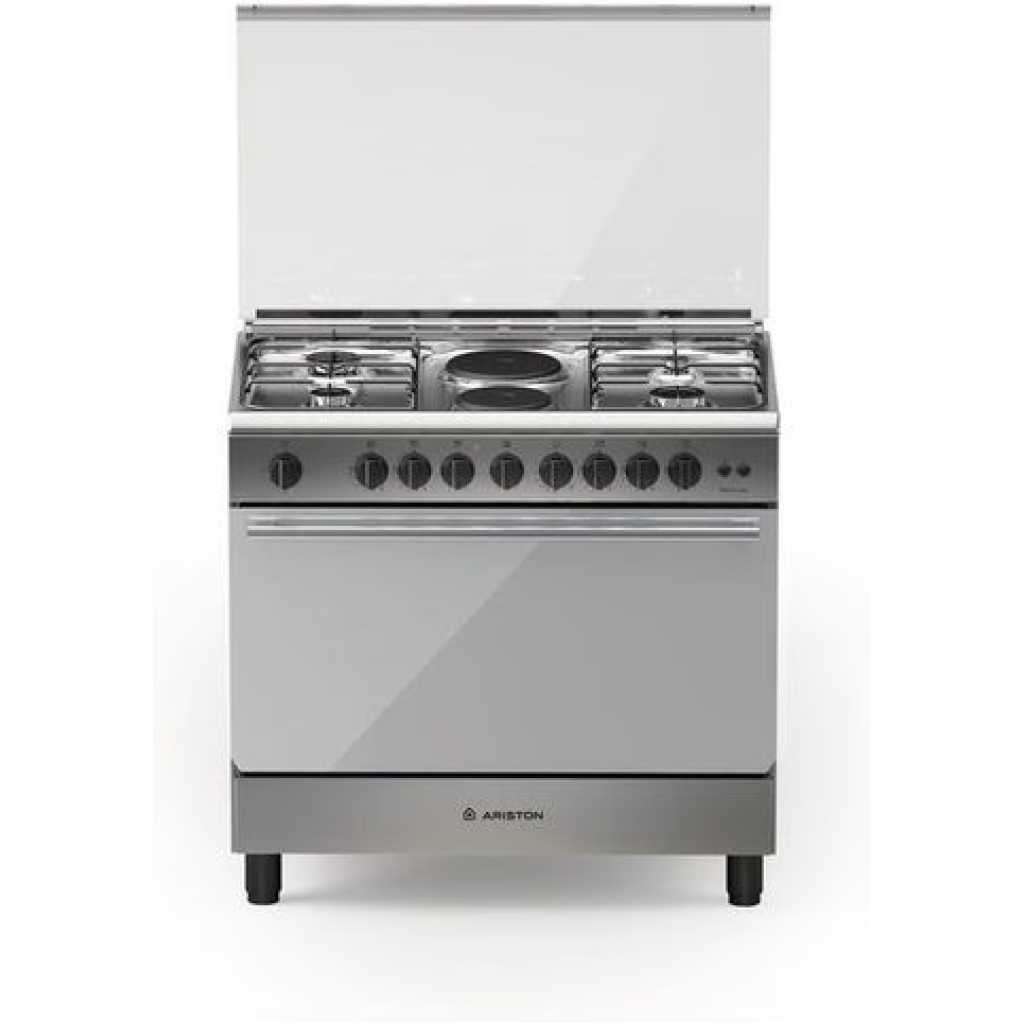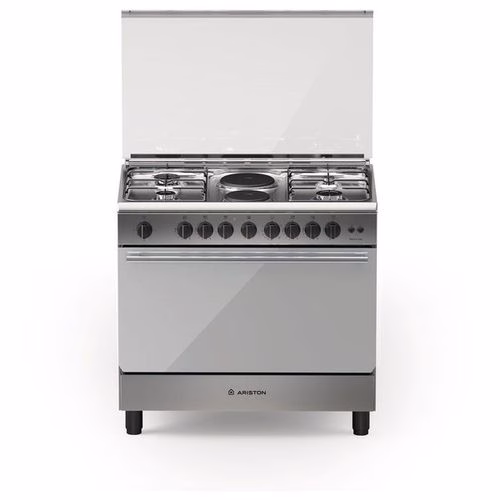 ARISTON FREESTANDING GAS COOKER BAM940, 90cms Stainless Steel This Ariston freestanding Gas Cooker features: 4 Gas Burners with 2 Electric Plates . Stainless Steel. Gas power supply. 90cm width. Wide Gas Oven and Gas Grill Ariston freestanding gas cooker and oven is perfect for cooking and making delicious dishes every time, the cooker has five gas burners so you can cook as many dishes as you want without worrying MAIN SPECIFICATION Width (cm): 90.0 Hob type: 4 GAS + 2 ELECTRIC Oven type: Gas Oven Oven self-cleaning technology: Easy to clean enamel 90×60 Full gas Cooking Range, MADE IN ITALY Multi-Level Flame Regulation. Perfect flame control: A kitchen must always be at the service of your creativity, ensuring the most suitable cooking method for the dish you want to make. That’s why the new Ariston cookers use the exclusive technology of discrete flame adjustment across 6 different power levels for every burner: from minimum to maximum, with 4 intermediate levels, to achieve optimum cooking for every recipe. Each level corresponds to one click-step on the knob, and every position can be repeated identically every time you want that same flame. BURNER. 100% UNIFORM COOKING From Ariston: the ideal way to cook any dish in a completely uniform manner: the burner, a guarantee of performance unsurpassed by anything else on the market. This special burner makes it possible to spread the heat of the flame to reach both the centre and the outside of the saucepan with the same maximum power of 3.25 kW, thus obtaining totally homogeneous cooking. Even when it has done its cooking, the burner continues to surprise: it only takes a moment to remove it and clean it, because its flame diffuser consists of a single smooth-surfaced block. Ariston cookers. Distinctive from every point of view. Elegant aesthetic impact in a cooker where beauty and functionality are harmoniously united. High quality materials, such as glass and metal, plus meticulous care over detailing, makes these cookers precious allies in everyday life while also bringing an impeccable style statement to your kitchen. COVER Tempered glass with brushed aluminum profiles, easy to grip and lift. In the event of accidental breakage, the strong, safe glass does not create sharp fragments. KNOBS Redesigned even more ergonomically, practically and handsomely… and non-slip. The serigraphed information on the fine nonscratch glass front panel is instantly legible. OVEN DOOR-HANDLE In brushed aluminum, contributing to a simple and elegant style. FAST PRE-HEAT All the heating elements switch on till the oven reaches the cooking temperature of the cycle you selected, cutting the preheat time. TECHNICAL DATA PERFORMANCE Power of 1st heating element (W) : 1750 Power of 2nd heating element (W) : 1750 Power of 3rd heating element(W) : 3600 Power of 4th heating element (W) : 3000 DIMENSIONS Height (cm) : 85.0 Width (cm) : 90.0 Depth (cm) : 60.0 STRUCTURAL FEATURES Energy input : GAS Integrated cleaning system : Easy to clean enamel Type of control : Mechanical Colour : Stainless Steel Grill pan set Number of gas burners : 4 Number of Electric Plates: 2 Control panel position : Front Knob type : Semiprofessional Ariston Adjustable feet : Yes – all Key Features: 4 gas burners + 2 Electric Plates Fast Pre-Heat, Enamelled pan Support Automatic Ignition Hob and Oven Flame Failure Device Wide Oven 119 Liters Gas Oven and Grill, Grill Power 2500 W Warming Tray