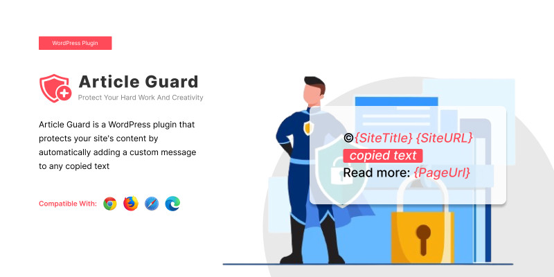 Article Guard - Protect Your Work WordPress Plugin. Article Guard is a WordPress plugin that protects your site's content by automatically adding a custom message to any copied