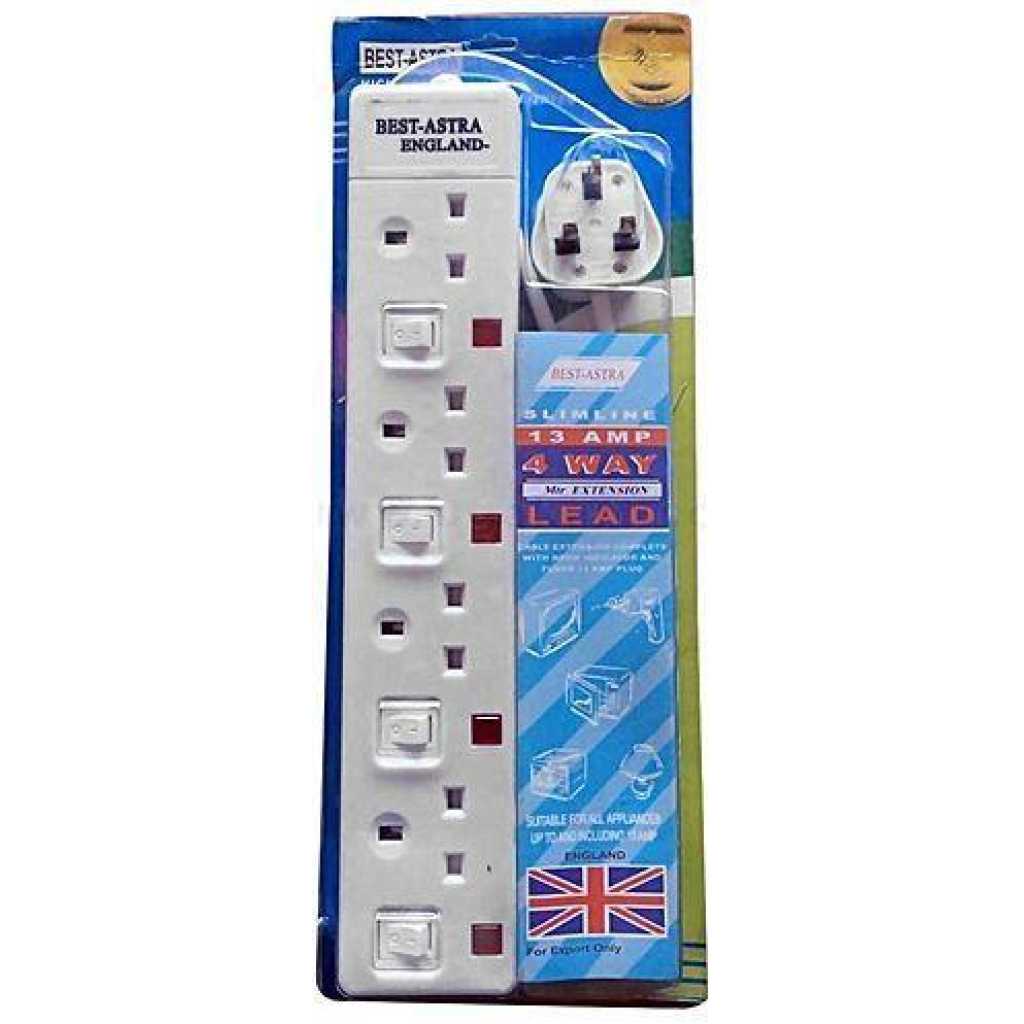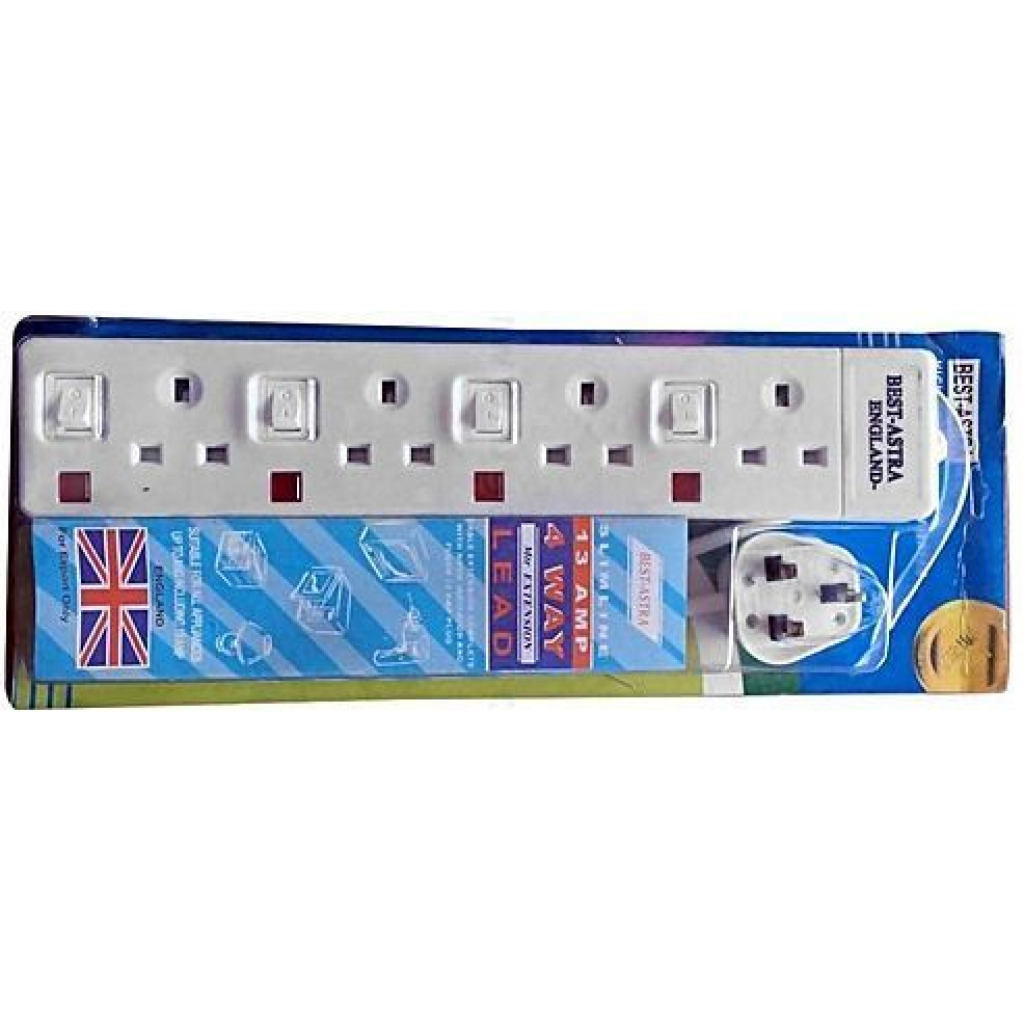 Astra England 4-Way Extension Cable Socket – White This 4 Way Socket Extension Cable is the ideal plug for all your electronics devices. Comes with a 6 Ft cable, making it long enough for home office or school.Made of heat resistant hard ABS plastic making withstand overheating. O rder this 4-Way Socket Extension Cable today from TilyExpress ,at a great affordable price and have it delivered right at your doorstep.