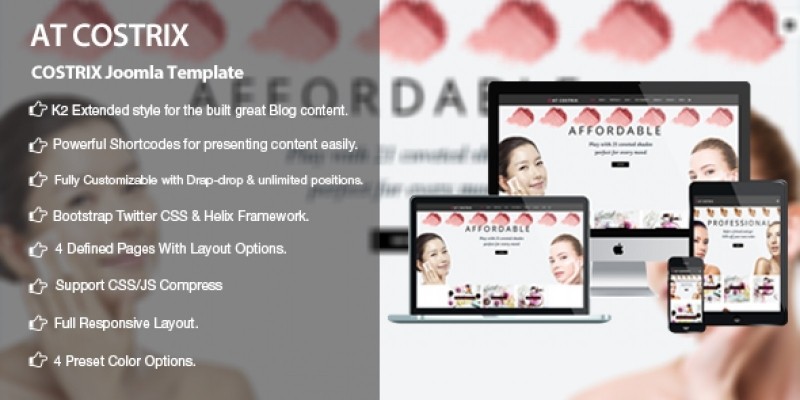 AT Costrix - Cosmetics Virtuemart Joomla Template. AT Costrix is Responsive VirtueMart Joomla template that targets for cosmetics store websites.