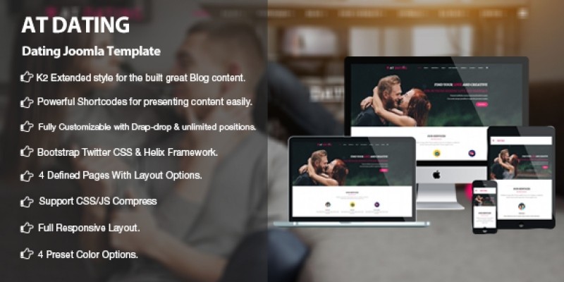 AT Dating - Responsive Dating Joomla template. This template was designed to meet all the design requirements of dating/matching online projects.