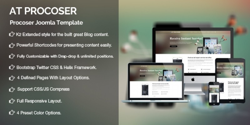 AT Procoser - Computer Repair Joomla Template. AT Procoser is Premium Joomla template tailored for mobile maintains and computer repair service template website.