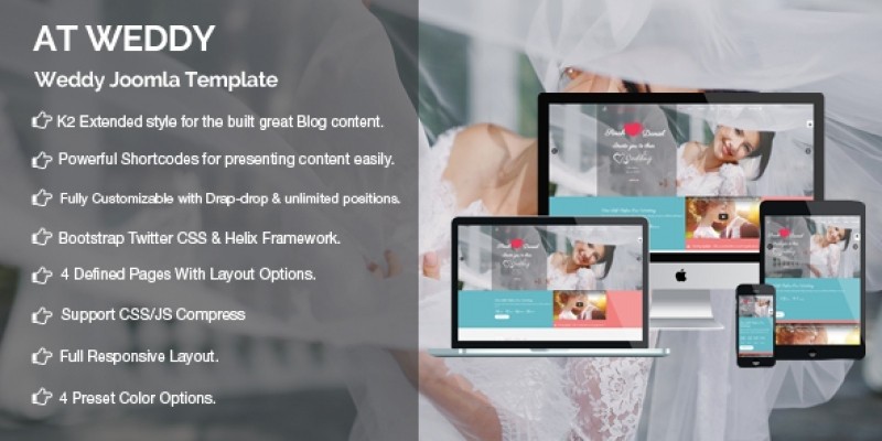 AT Weddy - Wedding Joomla Template. AT Weddy is Responsive Wedding Planner Joomla template.