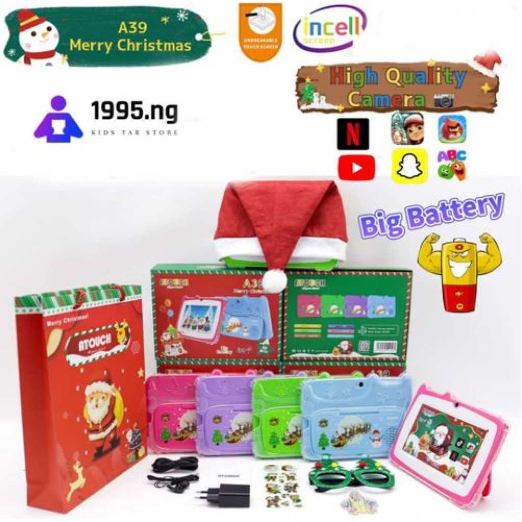 Atouch A39 Kids Android Tablet PC: The Ultimate Learning and Entertainment Device The **Atouch A39 Kids Android Tablet PC** is the perfect blend of functionality, entertainment, and educational tools designed specifically for children. Packed with cutting-edge features, this tablet is tailored to provide a safe and enriching experience for your little ones, while offering excellent performance and durability. This compact yet powerful device features **8GB of RAM** and **256GB of storage**, ensuring your child can run apps, store educational content, and enjoy seamless multitasking. It’s the ideal companion for learning, play, and creativity. #### **Key Features of Atouch A39 Kids Android Tablet PC** **1. Smooth and Reliable Performance:** Powered by **Android 13.0**, the Atouch A39 ensures faster and smoother performance, offering an intuitive user experience. Your kids can easily navigate through educational apps, games, and videos with no interruptions. With **8GB RAM**, the tablet handles multitasking effortlessly, and its **256GB ROM** provides ample space for storing apps, videos, photos, and other important content. **2. Designed for Learning and Fun:** The Atouch A39 comes pre-installed with kid-friendly apps and games that encourage learning and creativity. Parents can download additional educational apps from the Play Store, including coding, painting, mathematics, and storytelling apps, to help their child explore and develop new skills. **3. Compact 7-Inch Display – Perfect for Small Hands:** The **7-inch display** is the perfect size for children, offering a comfortable grip and easy handling. The HD screen delivers vibrant colors and sharp visuals, ensuring your child enjoys every moment watching videos, playing games, or reading books. Its **eye-friendly technology** reduces blue light emission, making it safe for extended usage. **4. Stay Connected Anytime, Anywhere:** This tablet is equipped with **WiFi connectivity**, allowing kids to access online learning platforms, educational videos, and interactive content. Your child can stay connected to their favorite apps and websites at home or on the go. **5. Long-Lasting Battery Life:** The **5,000mAh battery** ensures that the Atouch A39 can keep up with your child’s active lifestyle. From educational activities to entertainment, the battery provides hours of uninterrupted use, reducing the need for constant recharging. **6. Safe and Durable for Kids:** The Atouch A39 is built with durability, ensuring it can handle accidental drops and bumps. The tablet is complemented by a colorful, protective case designed for children, offering additional safety and an ergonomic grip. **7. Parental Controls for Peace of Mind:** Parents can manage and monitor their child’s usage with built-in parental control features. Limit screen time, set app usage restrictions, and ensure your child accesses only age-appropriate content. #### **Specifications** – **Operating System:** Android 13.0 – **Display:** 7-inch HD screen – **RAM:** 8GB – **ROM:** 256GB (expandable via microSD card) – **Processor:** High-speed quad-core processor for smooth performance – **Battery:** 5,000mAh, offering extended usage time – **Connectivity:** WiFi-enabled for online browsing and app usage – **Cameras:** Dual cameras for video calls, photos, and educational activities – **Design:** Compact, lightweight, and child-friendly with a rugged protective case #### **Why Choose the Atouch A39 Kids Android Tablet PC?** The ** Atouch A39 Kids Tablet ** is not just a gadget; it’s a gateway to learning, creativity, and entertainment for your child. Its compact size, powerful specifications, and kid-focused features make it the ideal choice for parents seeking an affordable yet high-quality tablet. Whether it’s for online schooling, interactive learning apps, or pure entertainment, this tablet is built to meet every need. With the Atouch A39 , you’re investing not just in a tablet but in your child’s future. Help them learn, play, and grow in a safe and controlled environment. — **Bring learning and fun into your child’s hands with the Atouch A39 Kids Tablet today!*