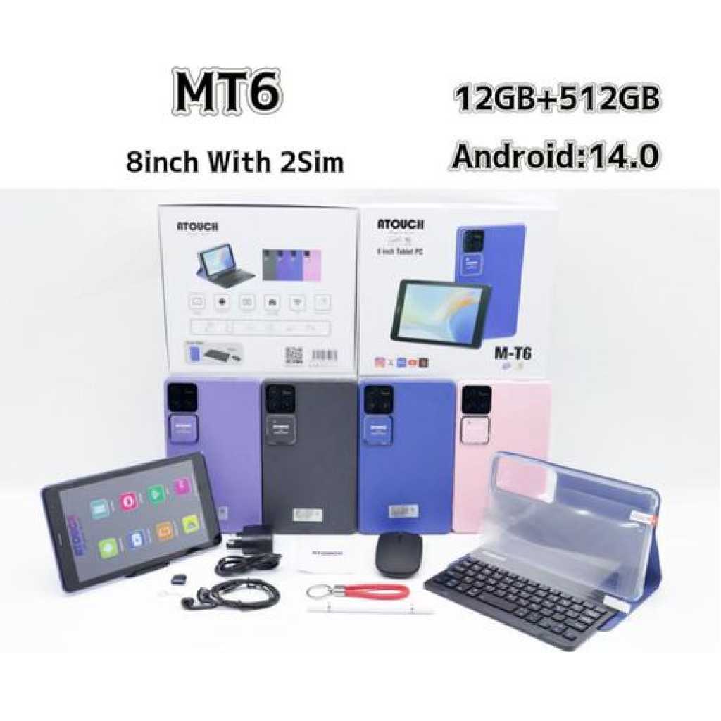 M-T6 Kids Tablet (Ages 8+) – 12GB RAM, 512GB ROM, 8″ Display, 5G, 9000mAh Battery + Wireless Keyboard & Mouse The M-T6 Kids Tablet is the perfect all-in-one device for children aged 8 and above, combining powerful performance, educational tools, and fun in one compact design. Whether for learning, reading, or safe browsing, this tablet delivers speed, storage, and safety every parent can trust. 8-Inch HD Display : Perfect screen size for reading, watching educational videos, and playing games comfortably. Massive 12GB RAM + 512GB ROM : Ensures smooth multitasking, faster app loading, and plenty of space for apps, videos, and school files. 5G Network Support : Superfast connectivity for online classes, streaming, and downloads. 9000mAh Long-Lasting Battery : Enjoy hours of uninterrupted learning and entertainment without constant charging. Wireless Keyboard & Mouse Included : Boost productivity and typing accuracy – great for homework, browsing, and games. Parental Controls : Keep your child safe online with easy-to-use settings. Educational & Entertainment Apps : Preloaded apps designed to support learning while keeping kids engaged. Why Choose the M-T6 Tablet? It’s more than just a tablet — it’s a learning companion. Built with top-tier specs, this device grows with your child’s educational and creative needs while ensuring digital safety.