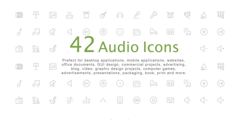 Audio Icon Pack. 42 outline style audio icons