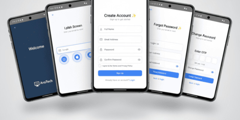 Auth UI Kit – Kotlin Jetpack Compose Modern Auth. A clean and modern Jetpack Compose authentication UI kit including login, signup, OTP, reset password, splash screen, and a simple