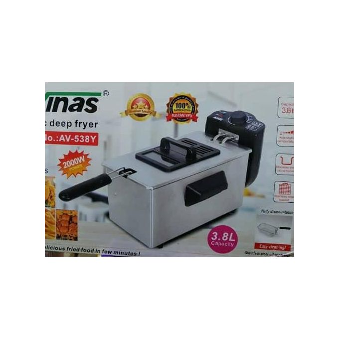 3.8 Litre Oil Chips Chicken Deep Fryer With Removable Bowl & Thermostat – Sliver 3.8 Liter Oil Chips Chicken Deep Fryer . Electric fryer for home with a removable bowl professional with a thermostat 3.8L 2000W Avinas AV-538Y allows you to quickly and easily cook up to 2 kg of fresh french fries. With a power of 2000 W, the deep fryer allows you to quickly heat vegetable oil and cook evenly. Adjust the temperature to suit your needs with the adjustable thermostat. Thanks to the removable dishwasher-safe basket, cleaning the deep fryer is a simple task. Non-slip feet ensure perfect stability of the device on the work surface. The Lexical air fryer is the perfect treat for the whole family! Key Features: