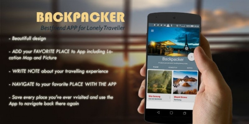 Backpacker - Android Travel App. Store your Fav Place, Navigate there and Write Review!