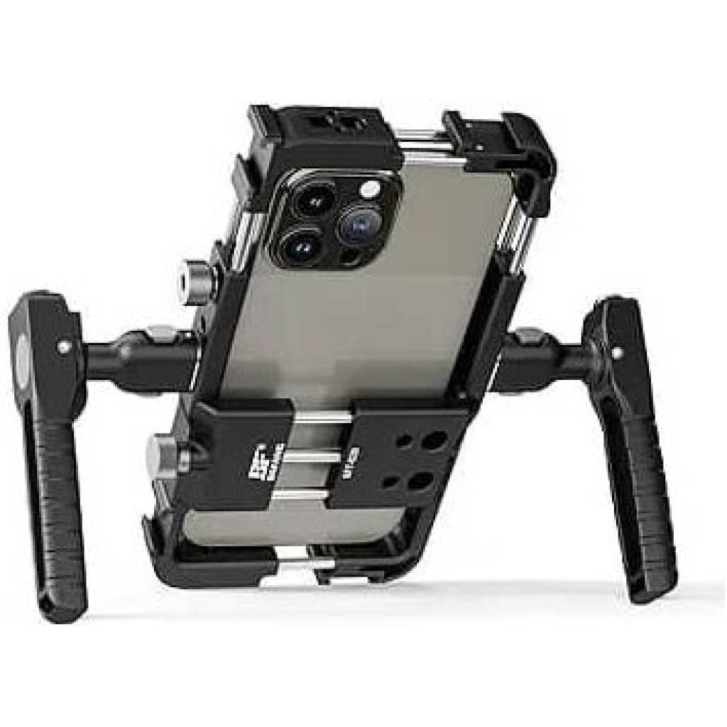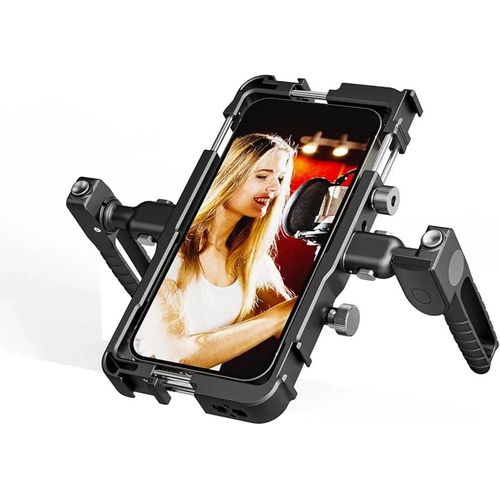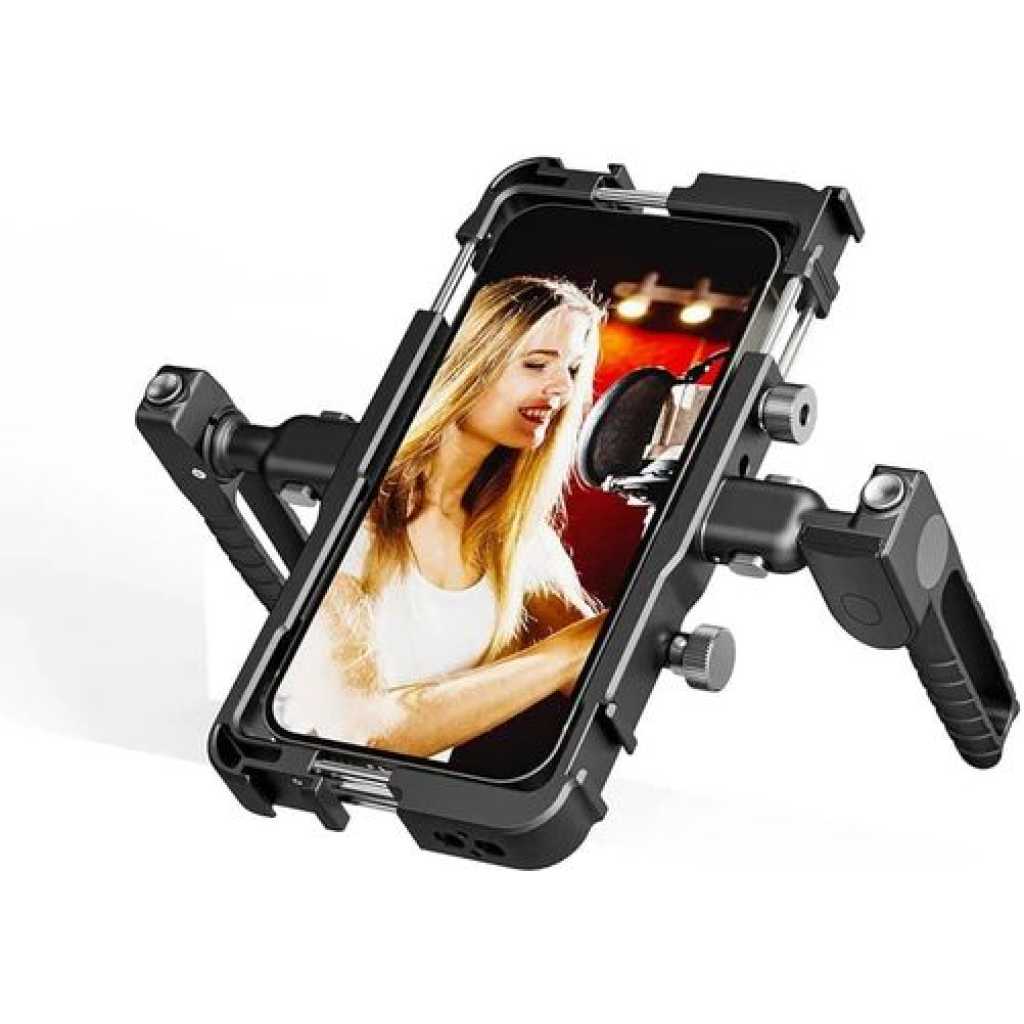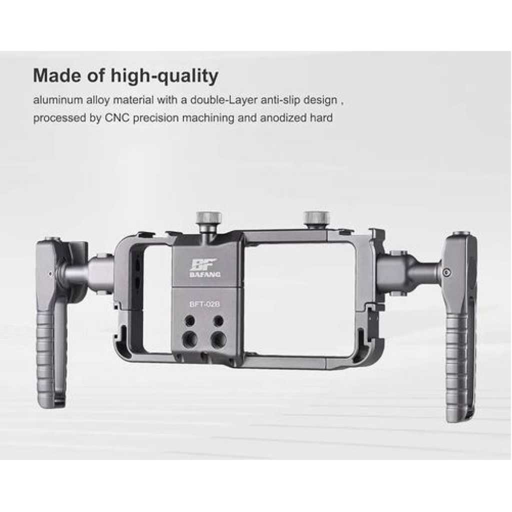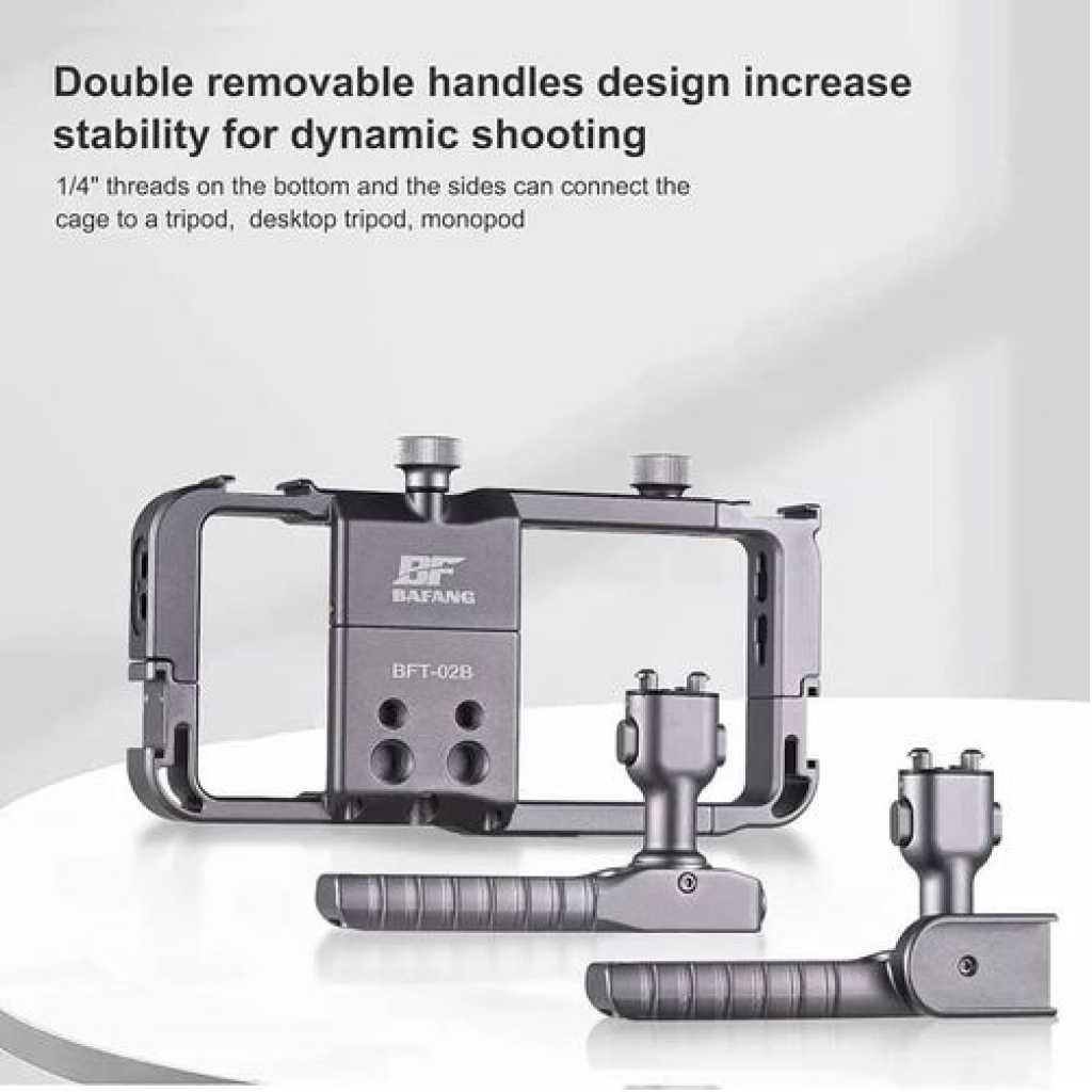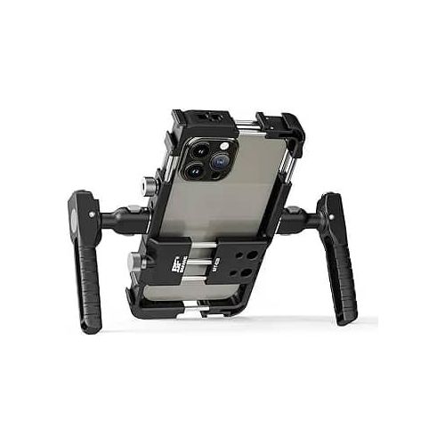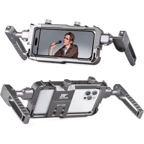 Key Features: [UNIVERSAL PHONE CAGE]: Designed for smartphones 58-90mm wide, providing a comfortable handheld video recording experience. [DUAL HANDLES DESIGN]: Record smooth videos easily with detachable side handles for added stability. [PROTECTIVE SILICONE PADS]: Anti-slip coverings prevent phone falls and scratches, ensuring device safety. [MULTIPLE EXTENSION PORTS]: Four cold shoe mounts allow for customization with various accessories like LED lights and microphones. [PREMIUM ALUMINUM ALLOY]: High-quality material with double-layer anti-slip design for durability and professional video recording.