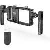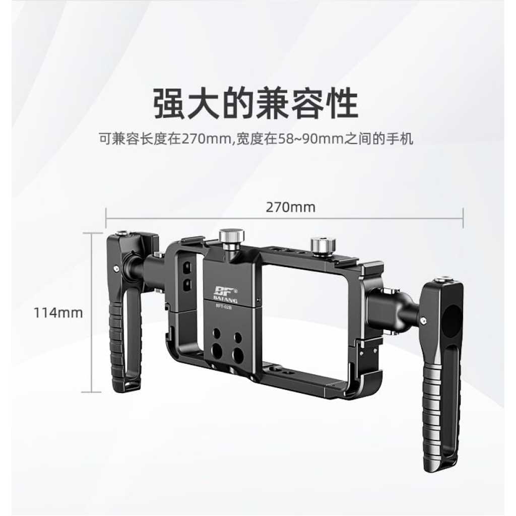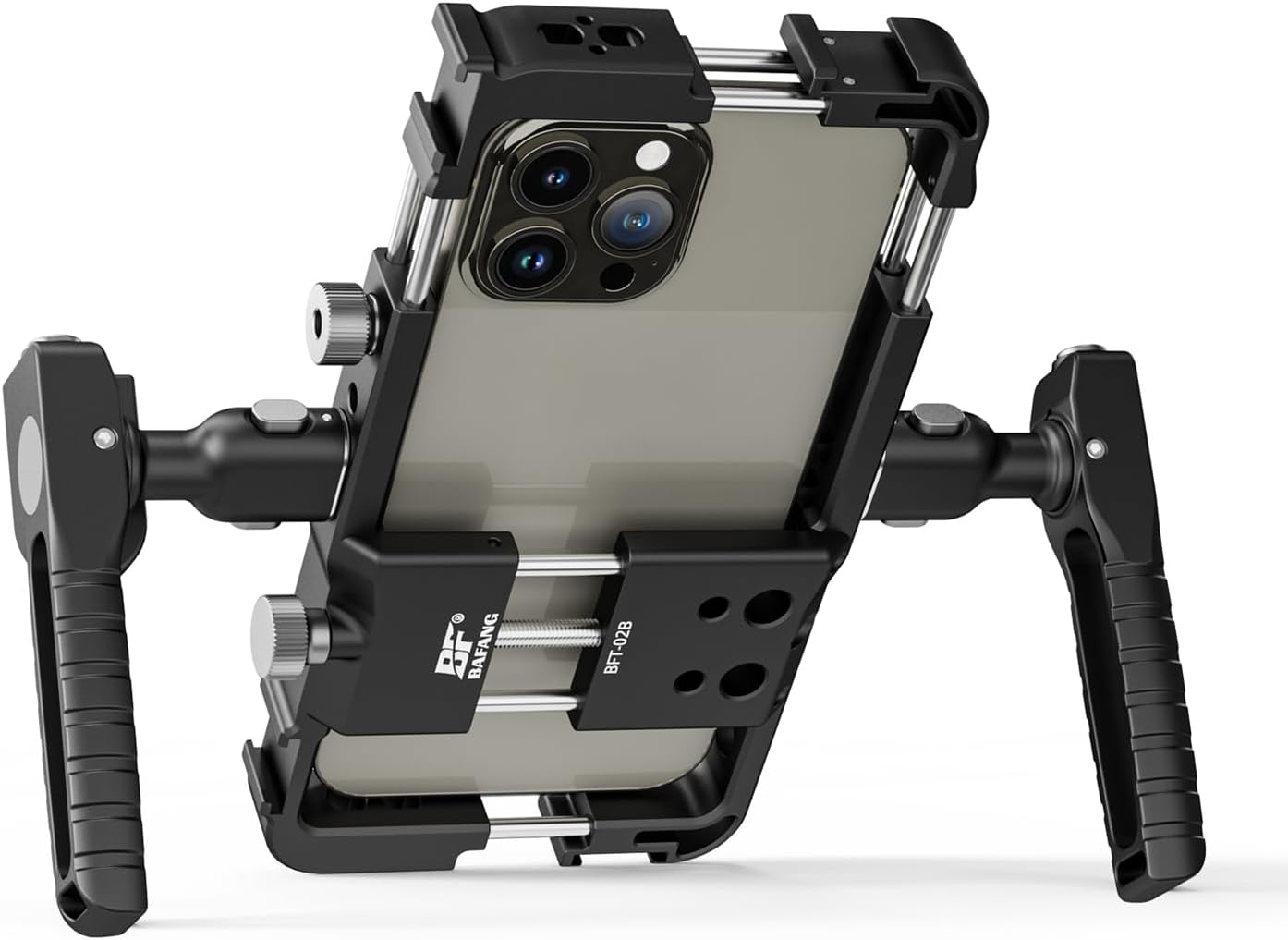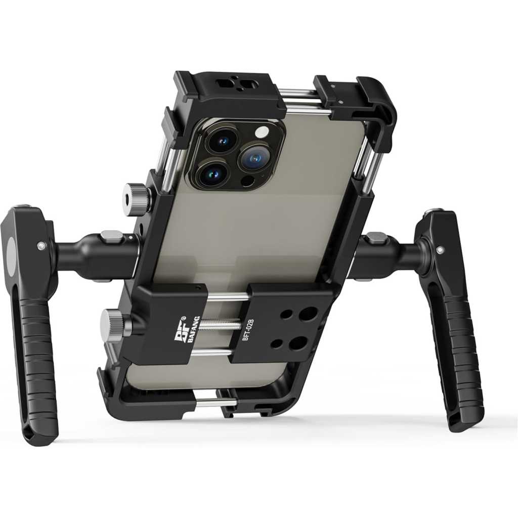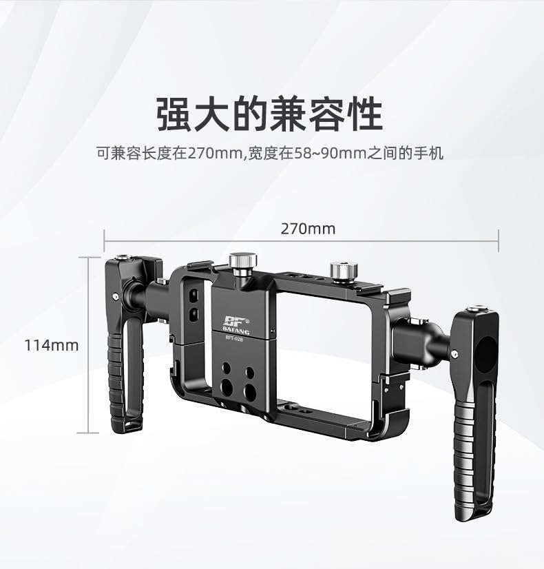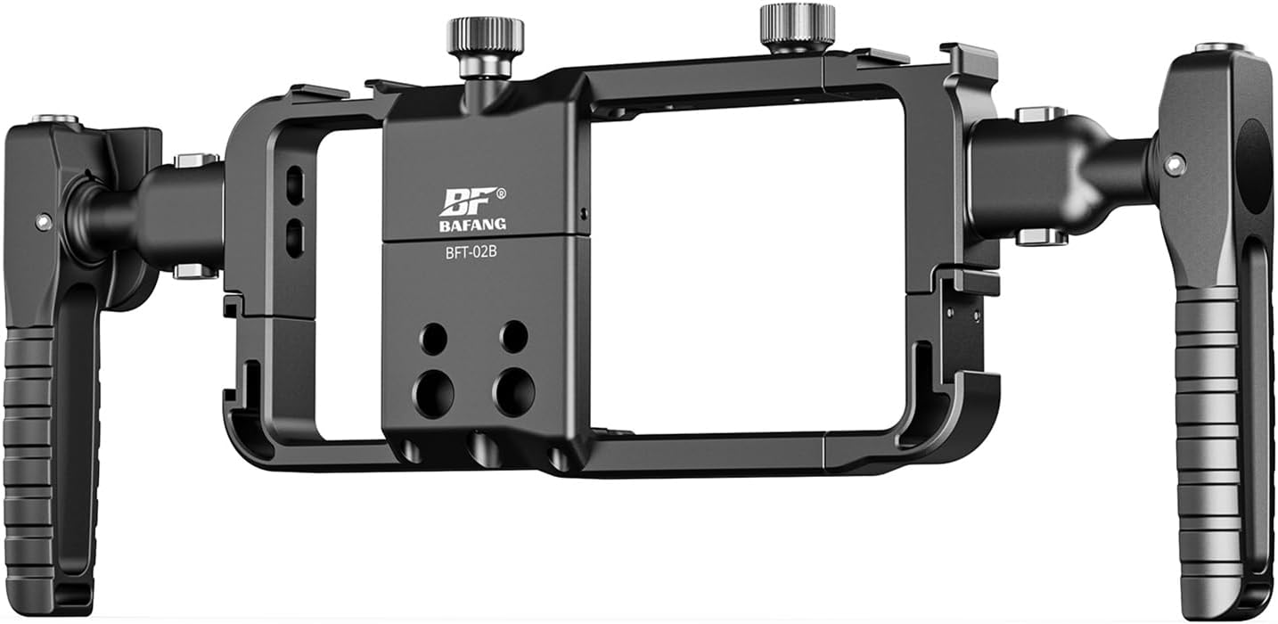 Universal Phone Cage: The phone cage designed for smartphones with a width of 58-90mm, can provide a comfortable and weight handheld video recording experience. Dual Handles Design: Comes with dual side handles, you can use this phone cage to record smooth vid stably and easily. And the side handle can be detached and used as a handle conveniently. With ive Silicone Pads: The phone video cage has -slip silicone coverings to the phone from falling off and it from scratch. Mulle Extension Ports: The phone video rig has four cold shoe mounts that allows you to add a LED fill , microphone, monitor or other accessories to make your video recording more professional. Premium Aluminum Alloy: The phone video cage is made of high-quality aluminum alloy material with a -Layer -slip design, processed by precision machining and anodized hard. Features: Universal Phone Cage: The phone cage designed for smartphones with a width of 58-90mm, can provide a comfortable and weight handheld video recording experience. Dual Handles Design: Comes with dual side handles, you can use this phone cage to record smooth vid stably and easily. And the side handle can be detached and used as a handle conveniently. With ive Silicone Pads: The phone video cage has -slip silicone coverings to the phone from falling off and it from scratch. Mulle Extension Ports: The phone video rig has four cold shoe mounts that allows you to add a LED fill , microphone, monitor or other accessories to make your video recording more professional. Premium Aluminum Alloy: The phone video cage is made of high-quality aluminum alloy material with a -Layer -slip design, processed by precision machining and anodized hard. Specifications: Color: Black Material: Aluminum Alloy Compatible Phone Width: 58-90mm Package List: 1 * Phone Cage 2 * Handles 1 * Remote Shutter 1 * User Manual Key Features: [UNIVERSAL PHONE CAGE]: Designed for smartphones 58-90mm wide, providing a comfortable handheld video recording experience. [DUAL HANDLES DESIGN]: Record smooth videos easily with detachable side handles for added stability. [PROTECTIVE SILICONE PADS]: Anti-slip coverings prevent phone falls and scratches, ensuring device safety. [MULTIPLE EXTENSION PORTS]: Four cold shoe mounts allow for customization with various accessories like LED lights and microphones. [PREMIUM ALUMINUM ALLOY]: High-quality material with double-layer anti-slip design for durability and professional video recording.
