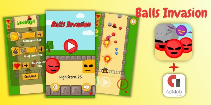 Balls Invasion - Unity game source code. Unity 2D shooter arcade game source code with AdMob