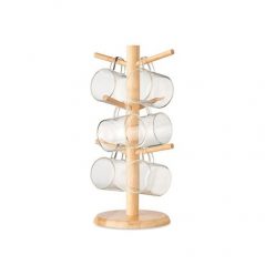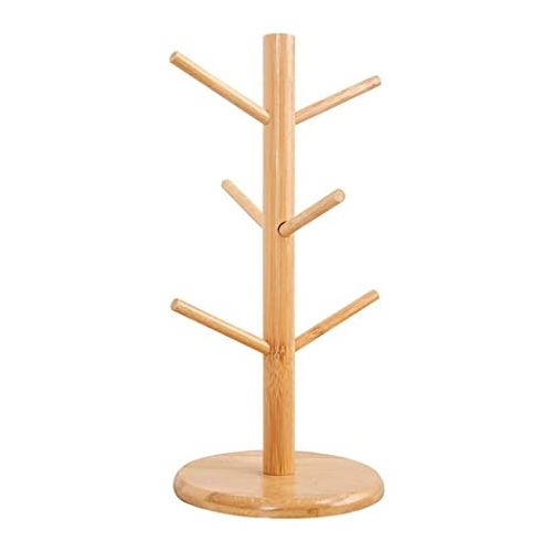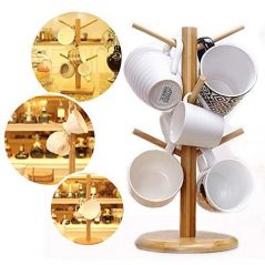 Bamboo Tree Mug Stand Coffee Cup Holder Rack Dryer with 6 Hooks. Made of natural bamboo- mug holder Holds up to 6 mugs/cups at one time Stands 13.8 inch/35 cm tall. Includes three non-slip foam at the moment so this rack will not tip over This coffee mug holder is made of natural bamboo which is 100% healthy, natural,durable and stylish Bamboo Mug Holder is easy to wash The Bamboo mug tree is light-weigh and portable. The modern design will give your table a natural countryside look Package including: 1 X Bamboo Mug Holder