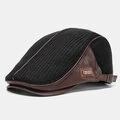 Banggood Design Mænd Strik Læder Patchwork Farve Afslappet Personlighed Fremad Hat Baskerhue