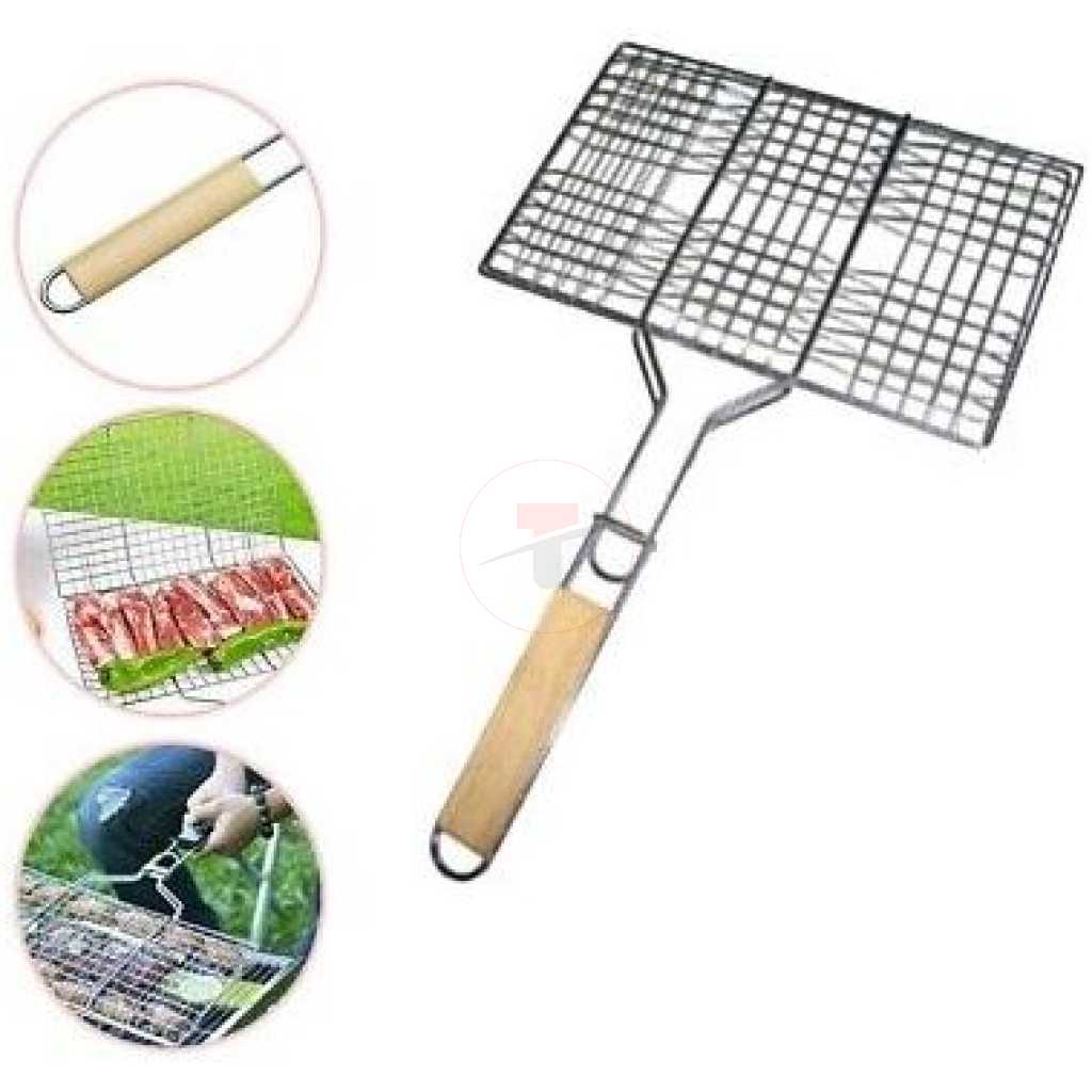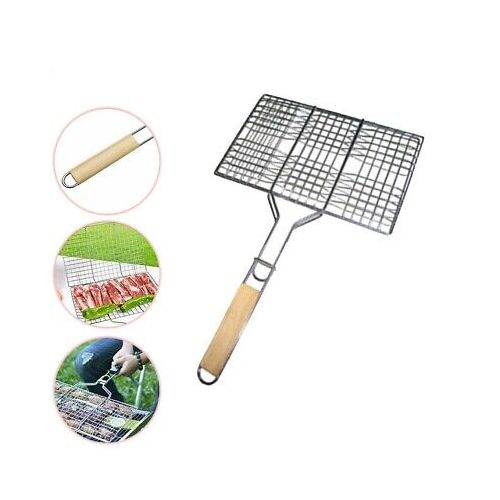 Barbecue Grilling Basket Grill BBQ Net Steak Meat Fish Veg Mesh Holder- Multi-colour. Big Space Barbecue Grill Basket fo r Fish and Vegetable with Wooden handle to avoid the hot barbecue. Qualifed chrome plated iron is durable and environmental. Good workmanship make the up and down grills fixed suitable. All kinds of bbq foods as meat, fish, sausage, vegetable etc can be toasted.9 inch Barbecue Grilling Basket Grill BBQ Net Steak Meat Fish Veg Mesh HolderThe basket is made of chrome-plated steel, heat-resistant and durable. The non slip Wooden handle for heat protection for hands. Long wooden handle keeps hands away from the hot grill. Easy to clean BBQ grill allows you to keep food firmly in place for easy turning and prevents the food from sticking to the grill. Key Features: Barbecue Grilling Basket Grill BBQ Net Steak Meat Fish Veg Mesh Holder- Multi-colour. Non-stick coated heavy gauge metal Rosewood Handle Adjusts to thickness of food Easy Clean up Handle loop for hanging