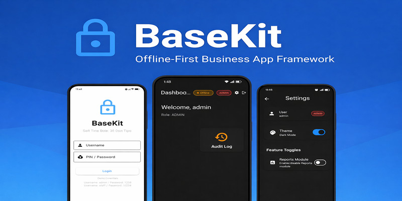 BaseKit - Offline Flutter Business Starter Kit. Offline-first Flutter business starter kit with local auth, role management, SQLite database, theme engine, and feature toggles.