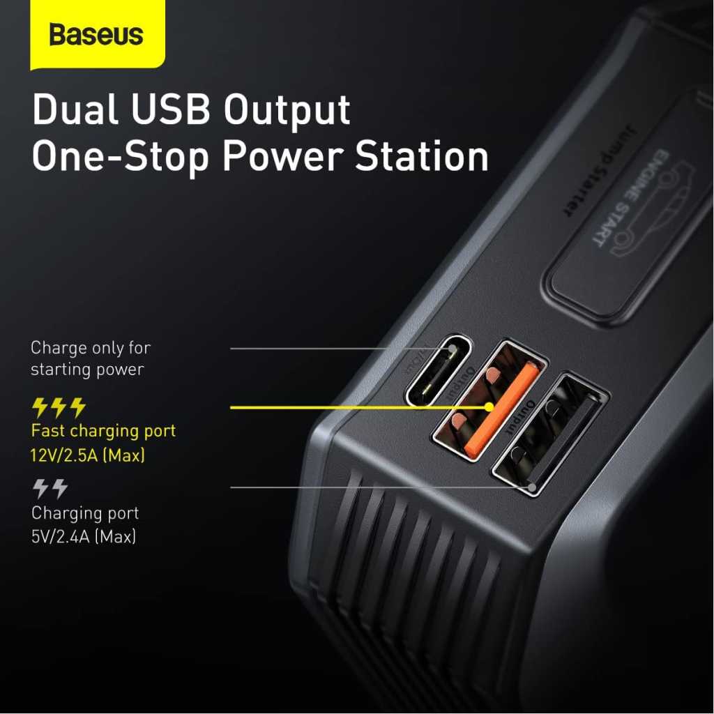 Peak Performance : The Baseus Super Energy Max is a powerful portable car jump starter with a 2000A peak current, designed to jump-start 12V vehicles. It’s suitable for 8.0L gas or 4.0L diesel engines, making it versatile for a variety of car battery types. This jump box ensures you’re prepared with a jump start battery pack for emergencies on road trips or daily commutes. Portable Powerhouse : Equipped with a robust 20000mAh battery jumper starter, this portable jump starter not only revives your car but also serves as a car battery charger portable unit. The battery box is an all-in-one jump starters & battery chargers solution, ensuring your vehicle battery is always charged and ready when you are. Multi-Functional Pack : The Baseus Super Energy Max isn’t just a jump pack; it includes jumper cables with a battery pack that also works as a car jump starter power bank. The 3-port charger allows you to power multiple devices simultaneously, turning this battery jumper into an essential accessory for any road trip. Safety-First Design : Safety is paramount with this car battery jump starter portable device. It features a digital display for monitoring, and the jumper cables are built to prevent short circuits. The car jump starter power bank is engineered to operate in extreme temperatures, ensuring reliable performance when you need it most. Visibility and Usability : The integrated LED lights on this portable car jump starter ensure you’re never left in the dark during night-time emergencies. The digital display keeps you informed of the jump box for car battery status, and the compact design makes it a convenient addition to your car emergency kit, ensuring peace of mind on any journey. Key Features: Peak Performance : The Baseus Super Energy Max is a powerful portable car jump starter with a 2000A peak current, designed to jump-start 12V vehicles. It’s suitable for 8.0L gas or 4.0L diesel engines, making it versatile for a variety of car battery types. This jump box ensures you’re prepared with a jump start battery pack for emergencies on road trips or daily commutes. Portable Powerhouse : Equipped with a robust 20000mAh battery jumper starter, this portable jump starter not only revives your car but also serves as a car battery charger portable unit. The battery box is an all-in-one jump starters & battery chargers solution, ensuring your vehicle battery is always charged and ready when you are. Multi-Functional Pack : The Baseus Super Energy Max isn’t just a jump pack; it includes jumper cables with a battery pack that also works as a car jump starter power bank. The 3-port charger allows you to power multiple devices simultaneously, turning this battery jumper into an essential accessory for any road trip. Safety-First Design : Safety is paramount with this car battery jump starter portable device. It features a digital display for monitoring, and the jumper cables are built to prevent short circuits. The car jump starter power bank is engineered to operate in extreme temperatures, ensuring reliable performance when you need it most. Visibility and Usability : The integrated LED lights on this portable car jump starter ensure you’re never left in the dark during night-time emergencies. The digital display keeps you informed of the jump box for car battery status, and the compact design makes it a convenient addition to your car emergency kit, ensuring peace of mind on any journey.