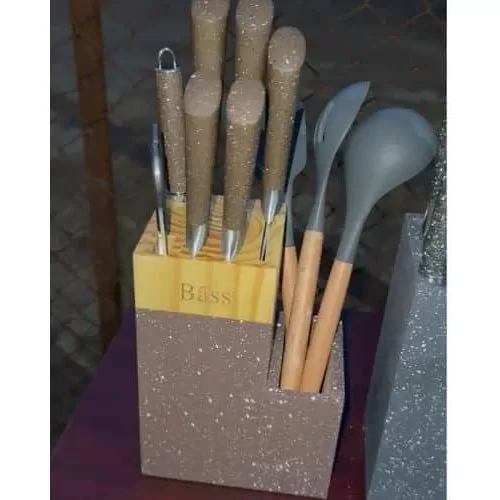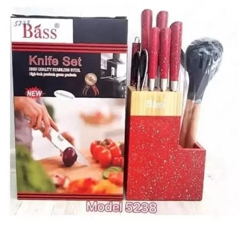 Key Features: Premium Quality: First Quality Stainless Steel and Very Sharp Gift Box: Beautifully Gift Boxed and This will make a great gift! Safety: Dishwasher Safe Design: This unique design of 11 piece set of Bass Stainless Steel knives will provide you with 5 beautiful knives in a Stainless Steel block Complete Set: This beautiful set of knives is sure to compliment your kitchen perfectly