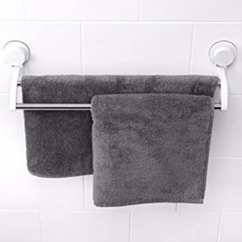 Key Features: This perfectly designed towel bar takes up minimal space Keeps towels blissfully dry and neatly stores them away within close reach. Measuring 53 x 10.5 x 1.3 cm The rail has a sturdy dipped hold and features two bars for securely gripping your towels with ease. Featuring fantastic suction and plenty of space for two bath towels