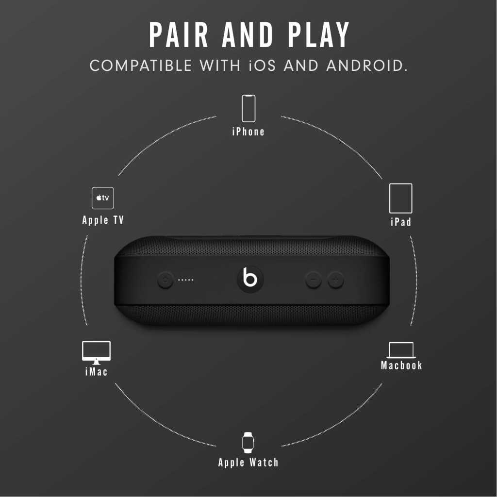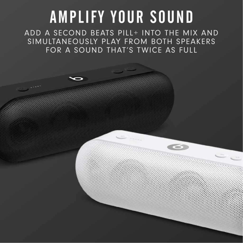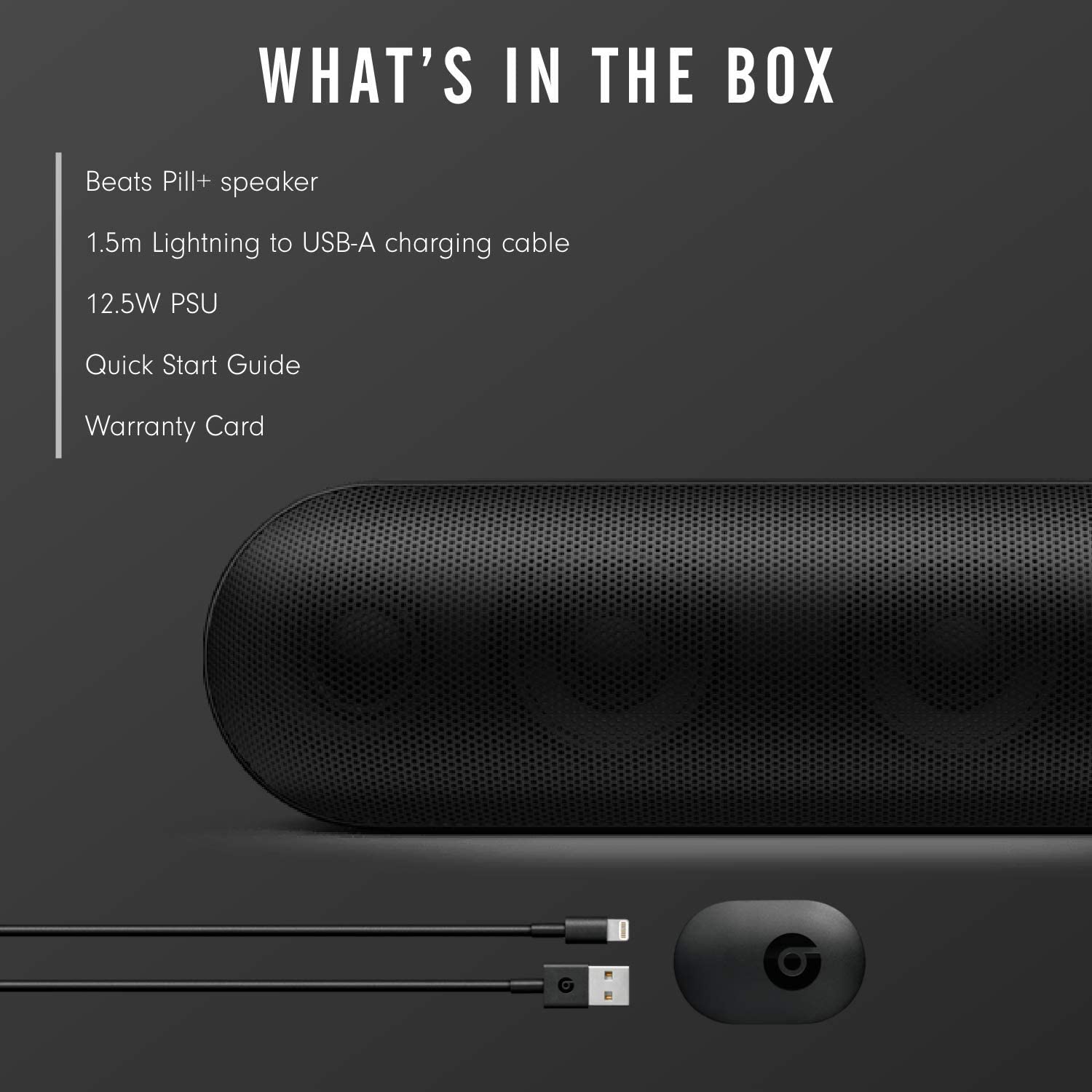 Key Features: Beats Pill+ Portable Wireless Speaker – Stereo Bluetooth, 12 Hours of Listening Time, Microphone for Phone Calls – Black. Defined, pure sound quality Bluetooth speaker in a portable, compact design – the length of the device is 0.68 feet Pair and play with a Bluetooth device with a 12-hour rechargeable battery Compatible with iOS and Android devices Download the Beats Pill+ app to unlock features that put you and your friends at the center of your music like never before. Bring a second speaker into the mix for even fuller sound or sound in stereo. Grab a friend and control the music from two Bluetooth sources. Charge out to charge your Apple iPhone and other devices; Type of Jack: Lightning to USB-A charging cable Enhanced speaker phone lets you make and receive calls with clarity Comes with Beats Pill+ speaker with 1.5m Lightning to USB-A charging cable, 12.5W PSU, Quick Start Guide and Warranty Card