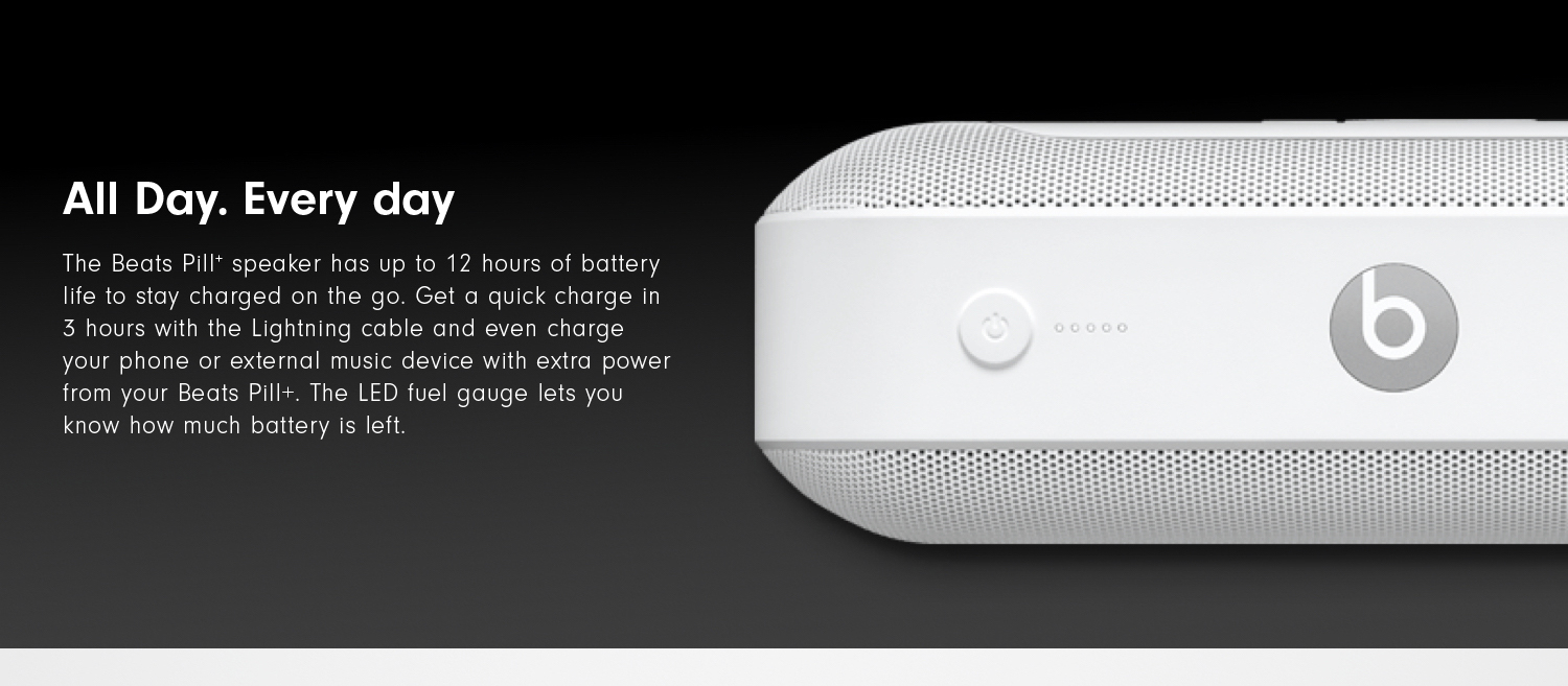 Beats Pill+ Portable Wireless Speaker – Stereo Bluetooth, 12 Hours of Listening Time, Microphone for Phone Calls – Black.