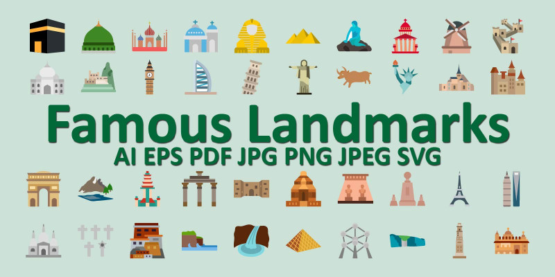 Beautifull Famous Landmark Icons set. Famous Landmark Icons, featuring iconic designs of world monuments and structures. Perfect for travel, educational, or cultural pr