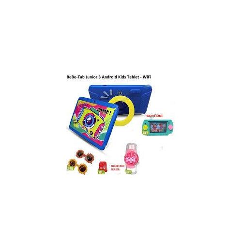 Brand: Bebe-Tab Model: Junior 3 Type: Tablet OS: Android 10 SIM: No Sim Hardware CPU: Quad-core 1.3GHz Processor RAM: 4GB ROM: 64GB Audio Format : MP3, WAV, AAC, eAAC, M4A Video format : MPEG4, H.264, H.265, MOV Connectivity: WiFi, GSM, Bluetooth, GPRS, Sensors: Accelerometer, Proximity, Light, Gyroscope Network WIFI Display Screen Size: 7″ Display Type: IPS Resolution: 1200*820 Camera Front camera: 2 MP with a flashlight Back camera: 5mp with a flashlight Battery Capacity(mAh) 3000mAh Key Features: ✅Screen size : 7 INCHES ✅Network : WI-FI ENABLED ✅RAM: 4GB ✅ROM: 64GB ✅Battery: 3000MAH ✅Camera: front and back ✅Pre-installed children apps and games ✅Android: 10