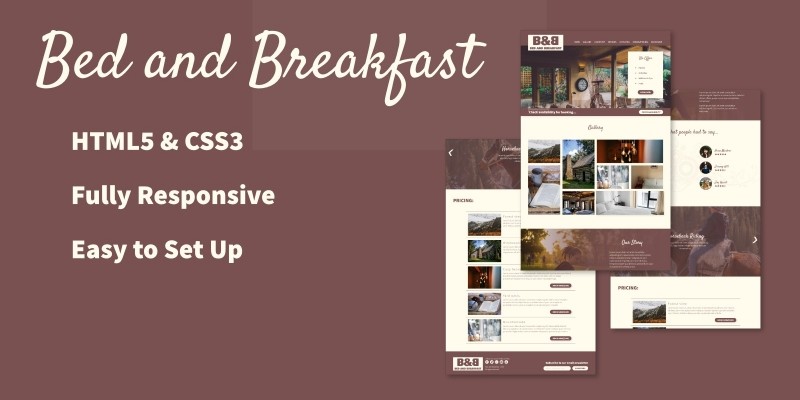 Bed And Breakfast HTML Template. Classic design, cozy feel HTML theme for a bed and breakfast type business