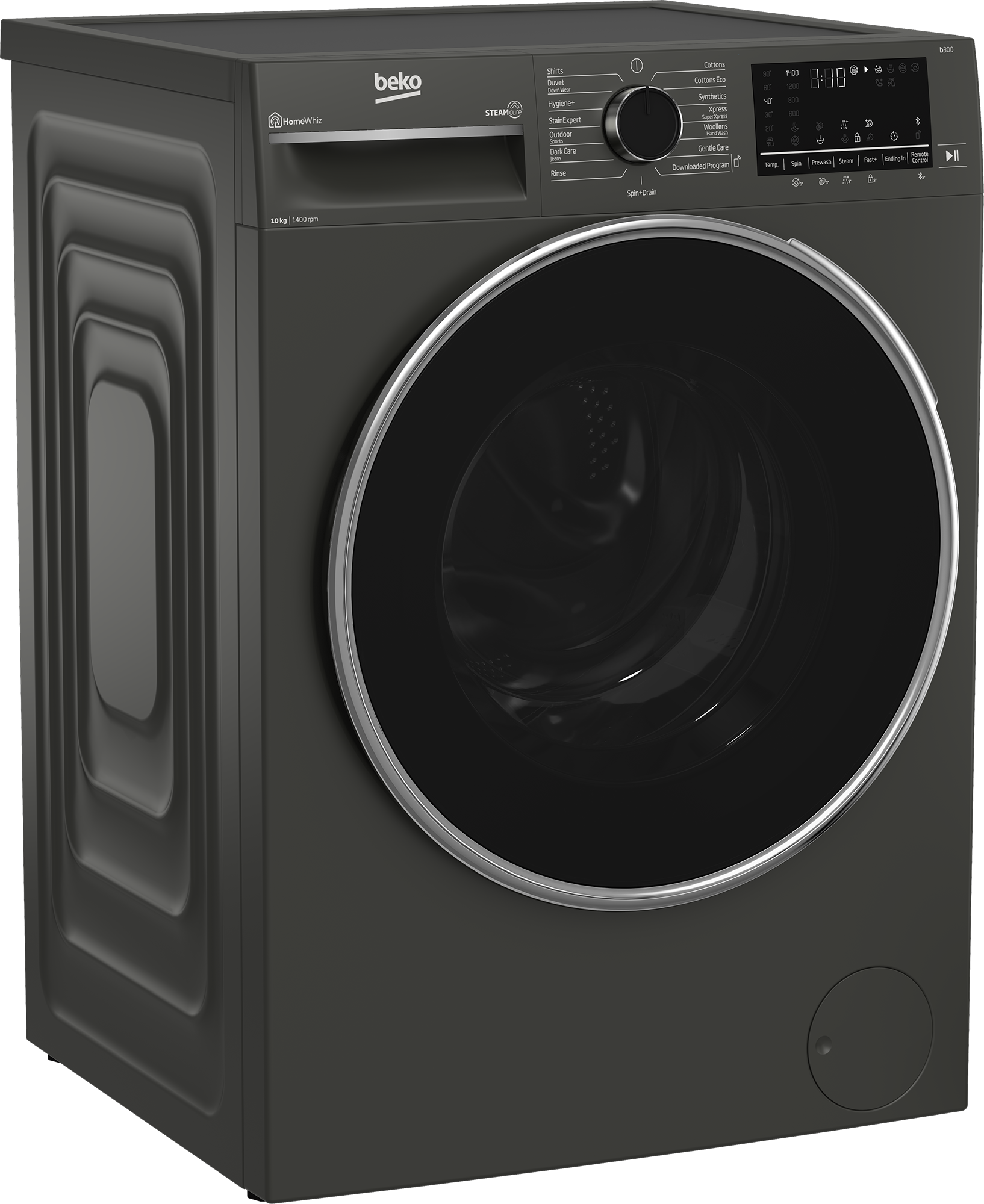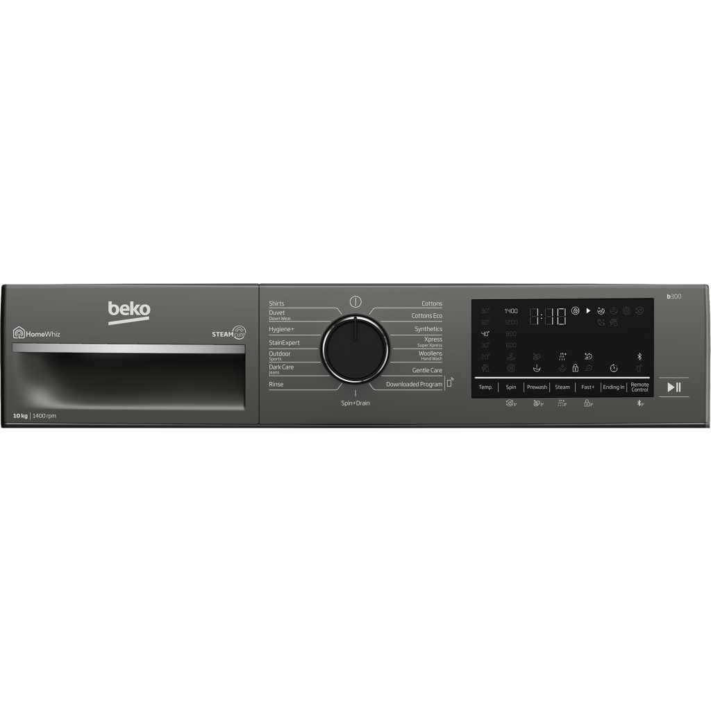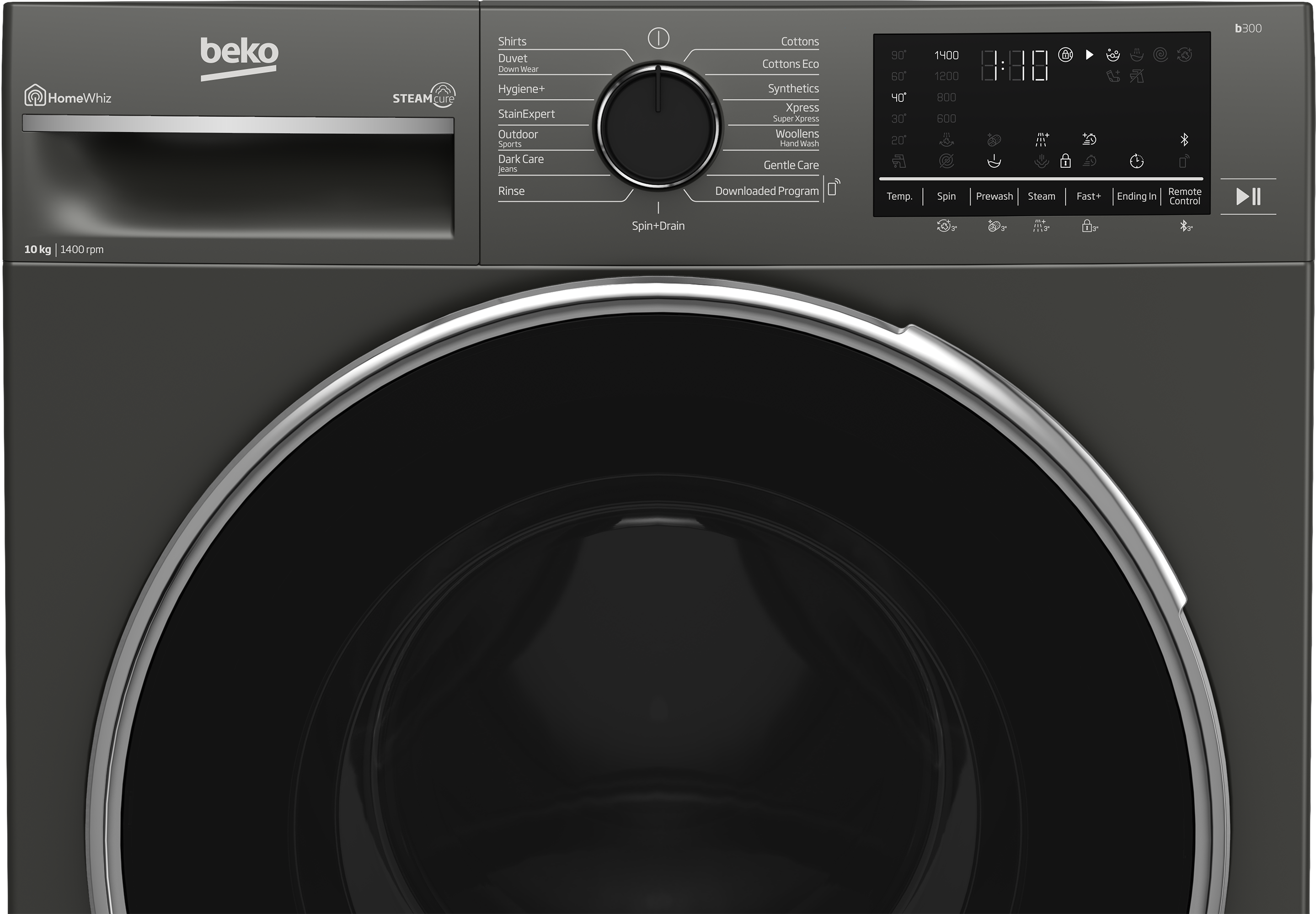 Beko 10kg Front Loader Washing Machine, BAW100 UK, 1400RPM, ProSmart Inverter Motor, SteamCure Technology, 15 Programs, AquaWave Drum – Grey. A+++ 10%) energy rated 10kg washing capacity 15 programs 1400 rpm Beko SteamCure technology Beko ProSmart Inverter Motor (Brushless Silent) Child lock AquaWave drum pattern Manhattan grey Key Features: Beko 10kg Front Loader Washing Machine, BAW100 UK, 1400RPM, ProSmart Inverter Motor, SteamCure Technology, 15 Programs, AquaWave Drum – Grey. A+++ 10%) energy rated 10kg washing capacity 15 programs 1400 rpm Beko SteamCure technology Beko ProSmart Inverter Motor (Brushless Silent) Child lock AquaWave drum pattern Manhattan grey