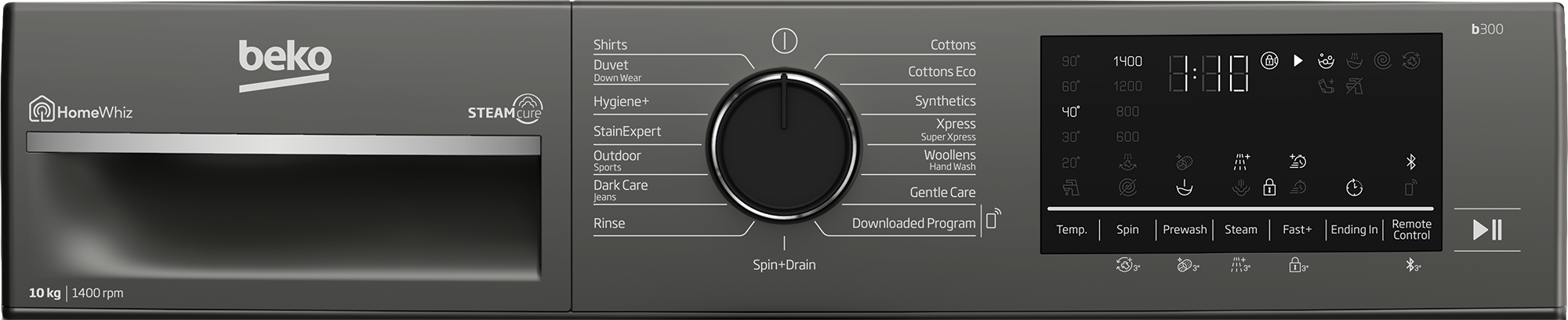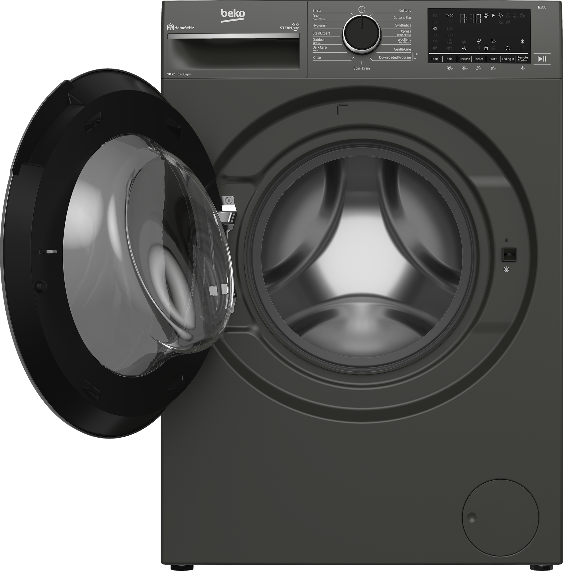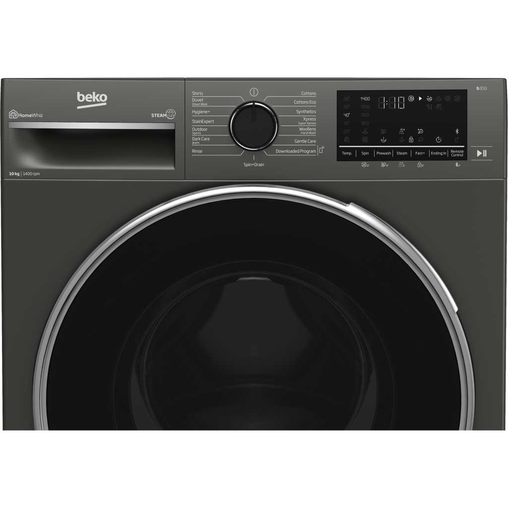 Beko 10kg Front Loader Washing Machine, BAW100 UK, 1400RPM, ProSmart Inverter Motor, SteamCure Technology, 15 Programs, AquaWave Drum – Grey. A+++ 10%) energy rated 10kg washing capacity 15 programs 1400 rpm Beko SteamCure technology Beko ProSmart Inverter Motor (Brushless Silent) Child lock AquaWave drum pattern Manhattan grey Key Features: Beko 10kg Front Loader Washing Machine, BAW100 UK, 1400RPM, ProSmart Inverter Motor, SteamCure Technology, 15 Programs, AquaWave Drum – Grey. A+++ 10%) energy rated 10kg washing capacity 15 programs 1400 rpm Beko SteamCure technology Beko ProSmart Inverter Motor (Brushless Silent) Child lock AquaWave drum pattern Manhattan grey