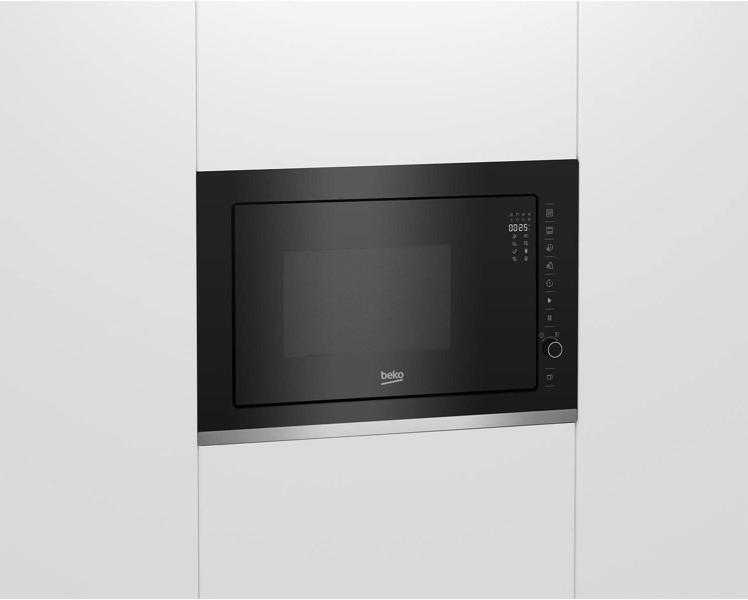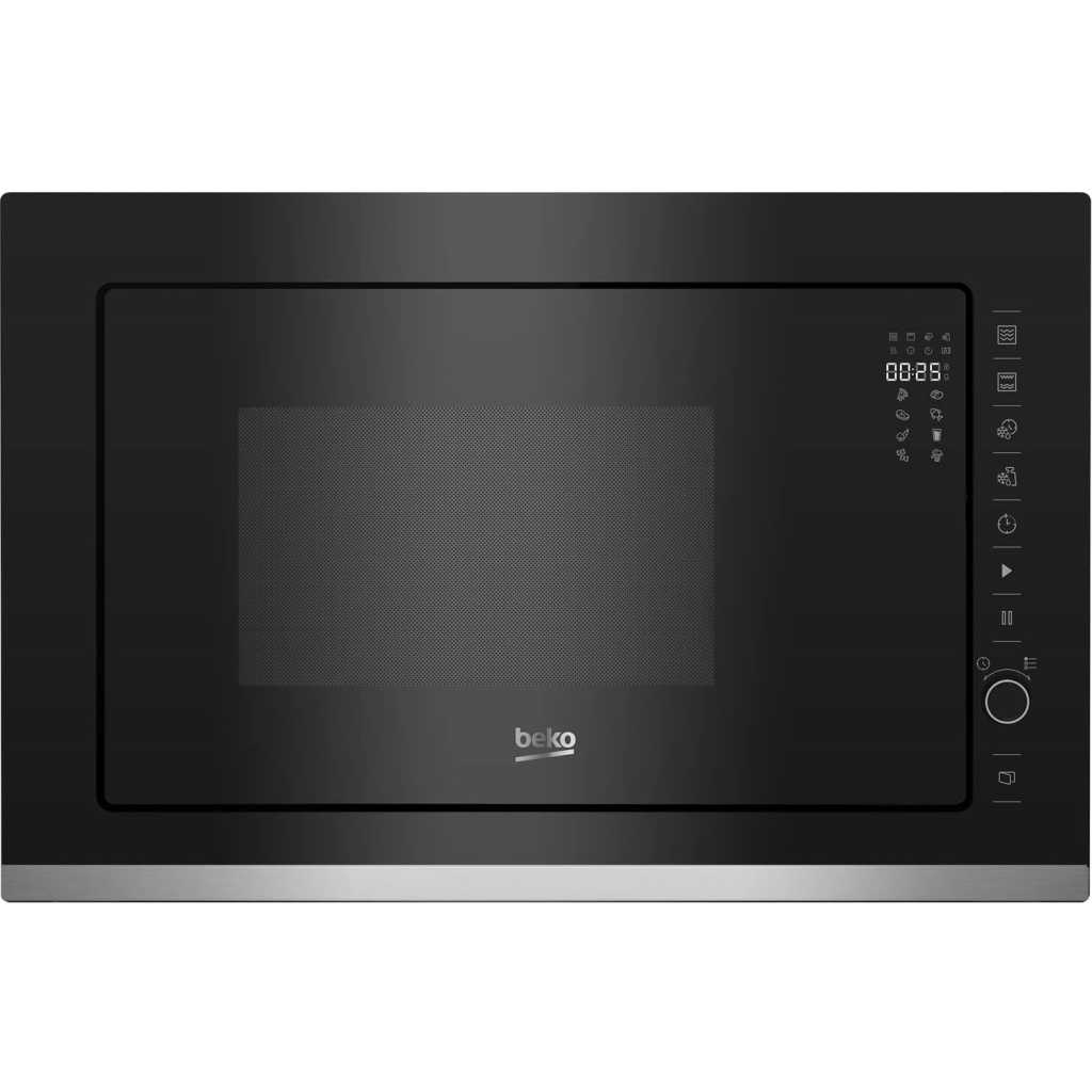 Beko 25L Built-in Microwave With Grill, BMGB25333X. UK Plug 25 Litres Black Fully integrated Grill (1000 watts) Electronic control 8 functions 5 Power levels Child lock Digital Timer 900W maximum power Ideal for busy families, this built-in microwave with a grill features an impressive 25-litre capacity, ensuring unparalleled cooking flexibility to meet your family’s needs. While the grill function effortlessly adds a crispy finish to your favourite meals, the Auto-Cook menu, with eight pre-set functions for specific foods like meat, vegetables, and popcorn, streamlines your cooking process. The easy-to-use touch control LED display also adds a stylish touch to your kitchen. Key Features: Beko 25L Built-in Microwave With Grill, BMGB25333X. UK Plug 25 Litres Black Fully integrated Grill (1000 watts) Electronic control 8 functions 5 Power levels Child lock Digital Timer 900W maximum power