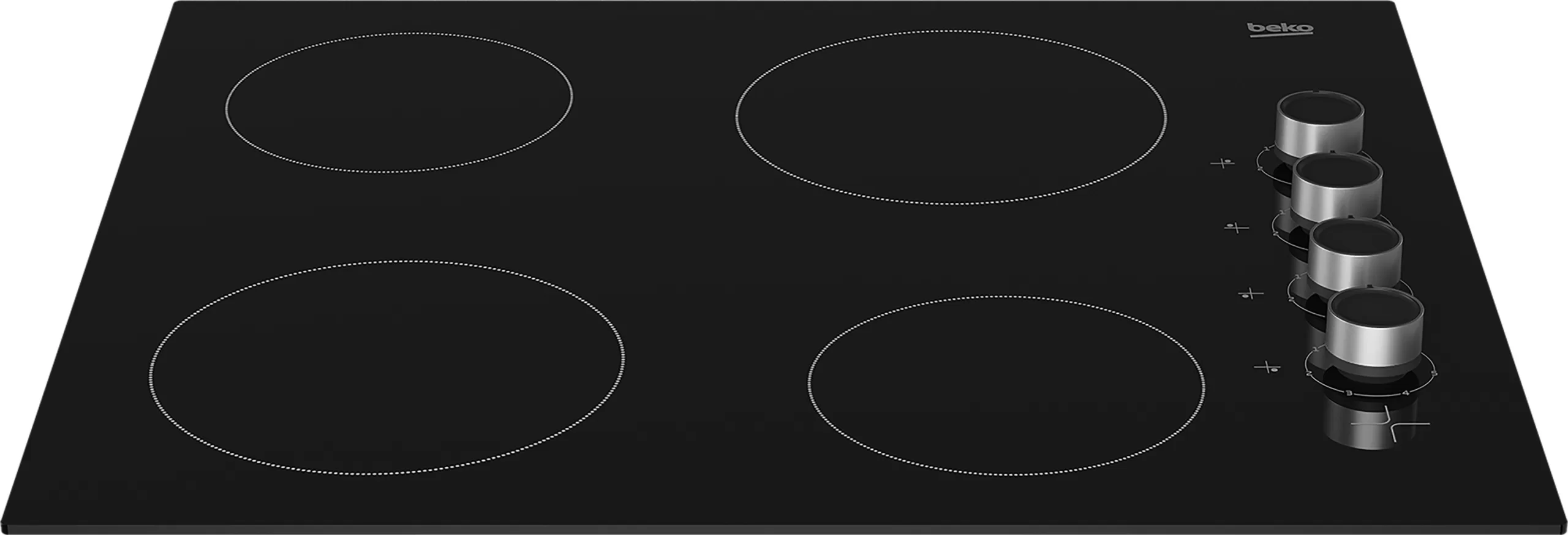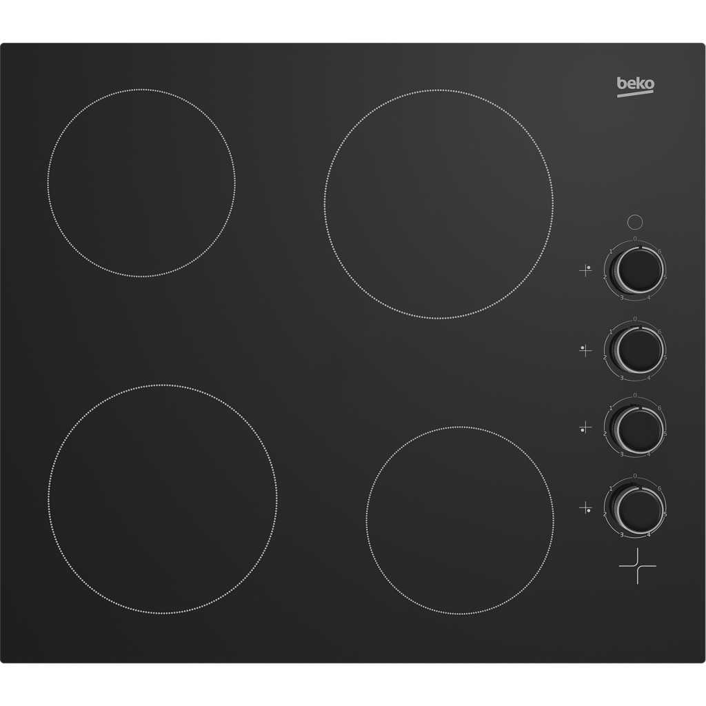 Beko 60cm Ceramic Hob with Touch Controls HCC64103. No plug 4 Vitroceramic plates Side knob control 2x 180mm & 1700W plates 2x 140mm & 1200W plates Black glass Key Features: Beko 60cm Ceramic Hob with Touch Controls HCC64103. No plug 4 Vitroceramic plates Side knob control 2x 180mm & 1700W plates 2x 140mm & 1200W plates Black glass