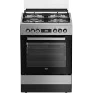 Beko 90cm Cooker BGES901; 4 Gas Burners, 2 Electric Plates, Electric Oven with Fan, Gas Cylinder Compartment, Rotisserie, Cast Iron Pan Supports, Double Glass Door, Stainless Steel Finish