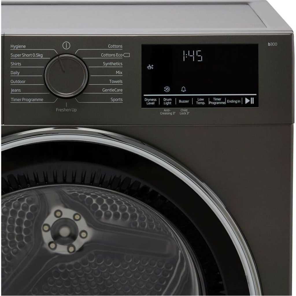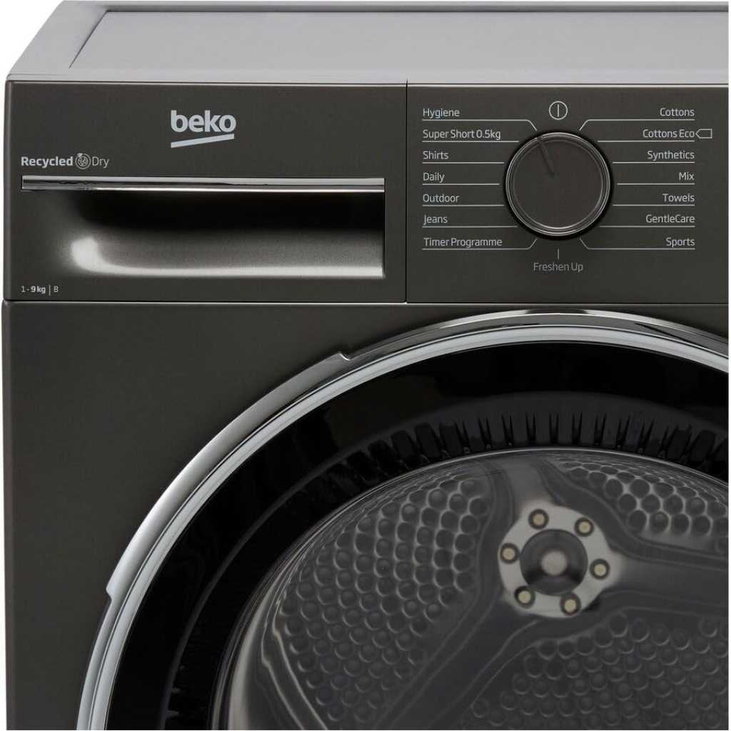 Beko 9Kg Condenser Tumble Dryer – Graphite | B3T4911DG. Condenser dryer B energy rated 9kg drying capacity 15 programs Aquawave drum Child lock Auto anticreasing Water tank full indicator Manhattan grey Key Features: Beko 9Kg Condenser Tumble Dryer – Graphite | B3T4911DG. Condenser dryer B energy rated 9kg drying capacity 15 programs Aquawave drum Child lock Auto anticreasing Water tank full indicator Manhattan grey